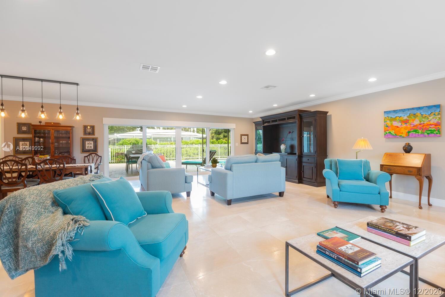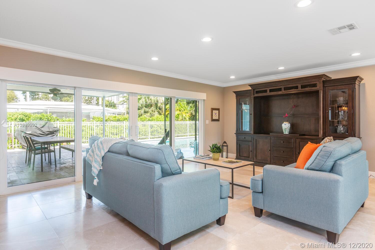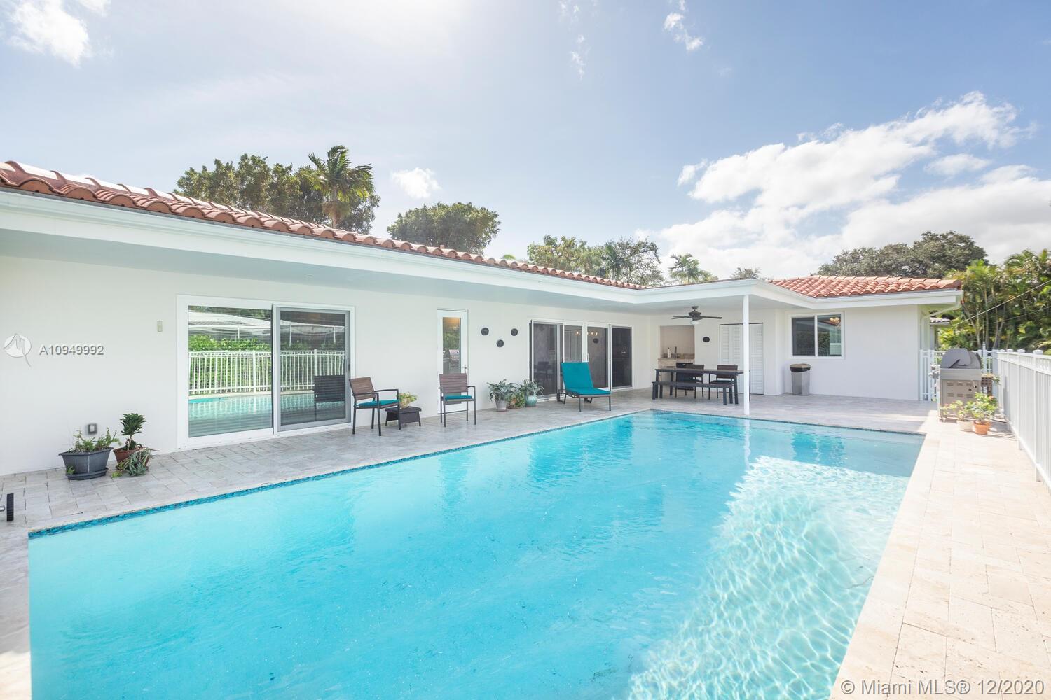 This is a fabulous turnkey home steps from the bay and on a lovely street. Spacious open concept home with many upgrades. Beautiful kitchen, granite countertops, s/s appliances, gas stove, new cabinets and tons of storage. Hurricane proof windows and doors, electric garage door, Tesla charging station. Living room with crown moldings, freshly painted ceiling, sliders open to the pool and patio. Large bedrooms with en-suite bathrooms, walk-in closets. Lush landscaping and private pool area w/sink, fridge, BBQ w/natural gas included, new pavers on patio, heated pool completely re-done 2014, new pool pump 2018. Septic tank cleared 2018, exterior of house and patio painted 2020. Must wear masks for showings!! *SEE 3-D VIRTUAL TOUR*