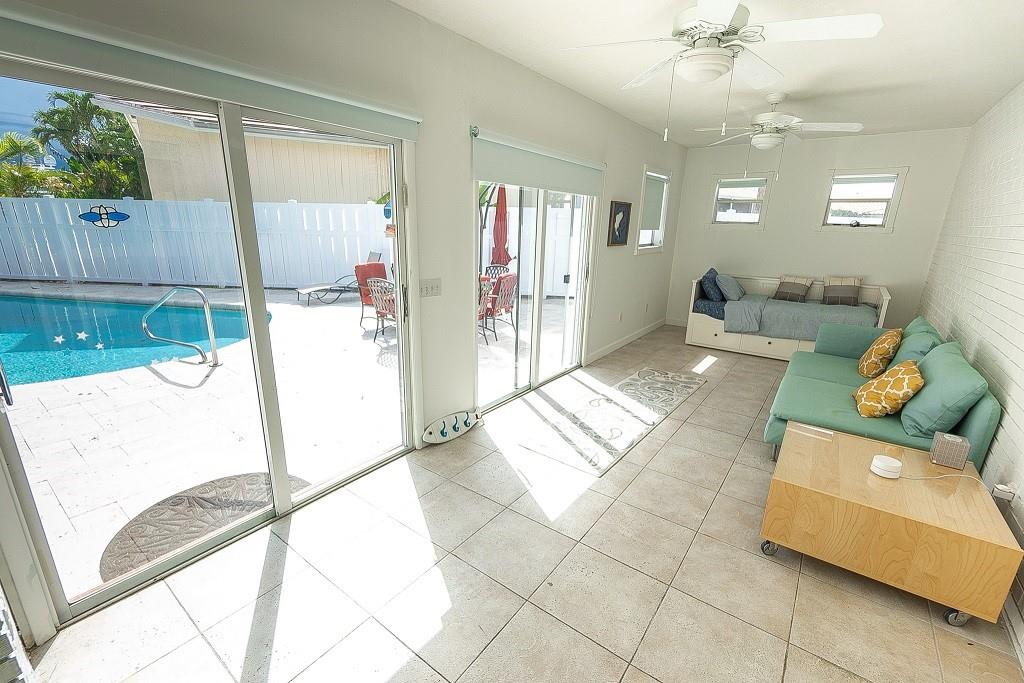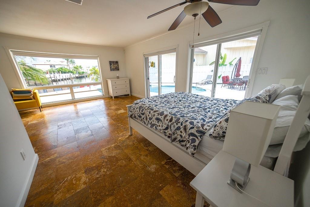 Long water views from this welcoming waterfront home at the exclusive Bermuda Riviera gated community. Entrance from A1A, a walk to the beach, restaurants, nightlife entertainment and shopping. House is one floor located on a corner double lot conveniently close to the entrance. Bright with lots of windows. House is fenced and there's a NEW ROOF. The pool is heated and viewing the canal, there is a space for a small boat on the dock.