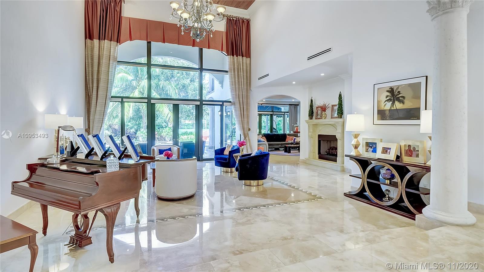 Luxury, elegance, and comfort are carried throughout this grand Mediterranean masterpiece. With a grand entry, beautiful chef's kitchen, multiple entertaining rooms, elevator, and true backyard oasis, you will be proud to call this your home. Sophisticatedly designed with marble, granite, and millwork, the craftsmanship of this home remains unparalleled. Large master suite includes a spacious walk-in closet, en-suite bathroom, and private terrace. Other features of this house include a fireplace, impact glass, generator, and gorgeous landscaping with avocado trees, mango trees, lime bush.