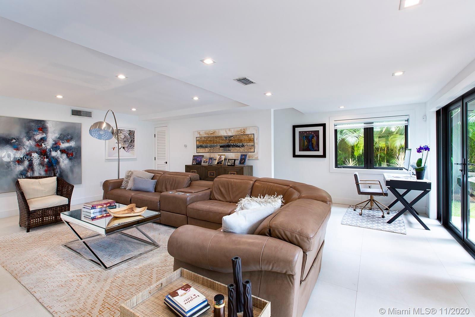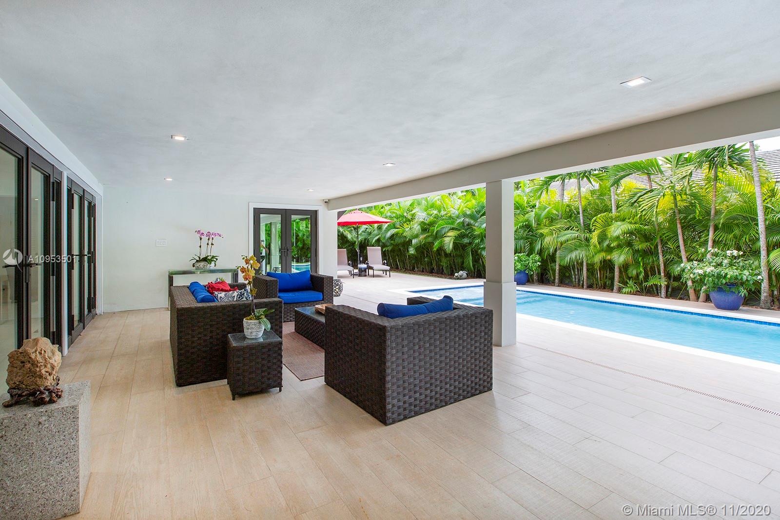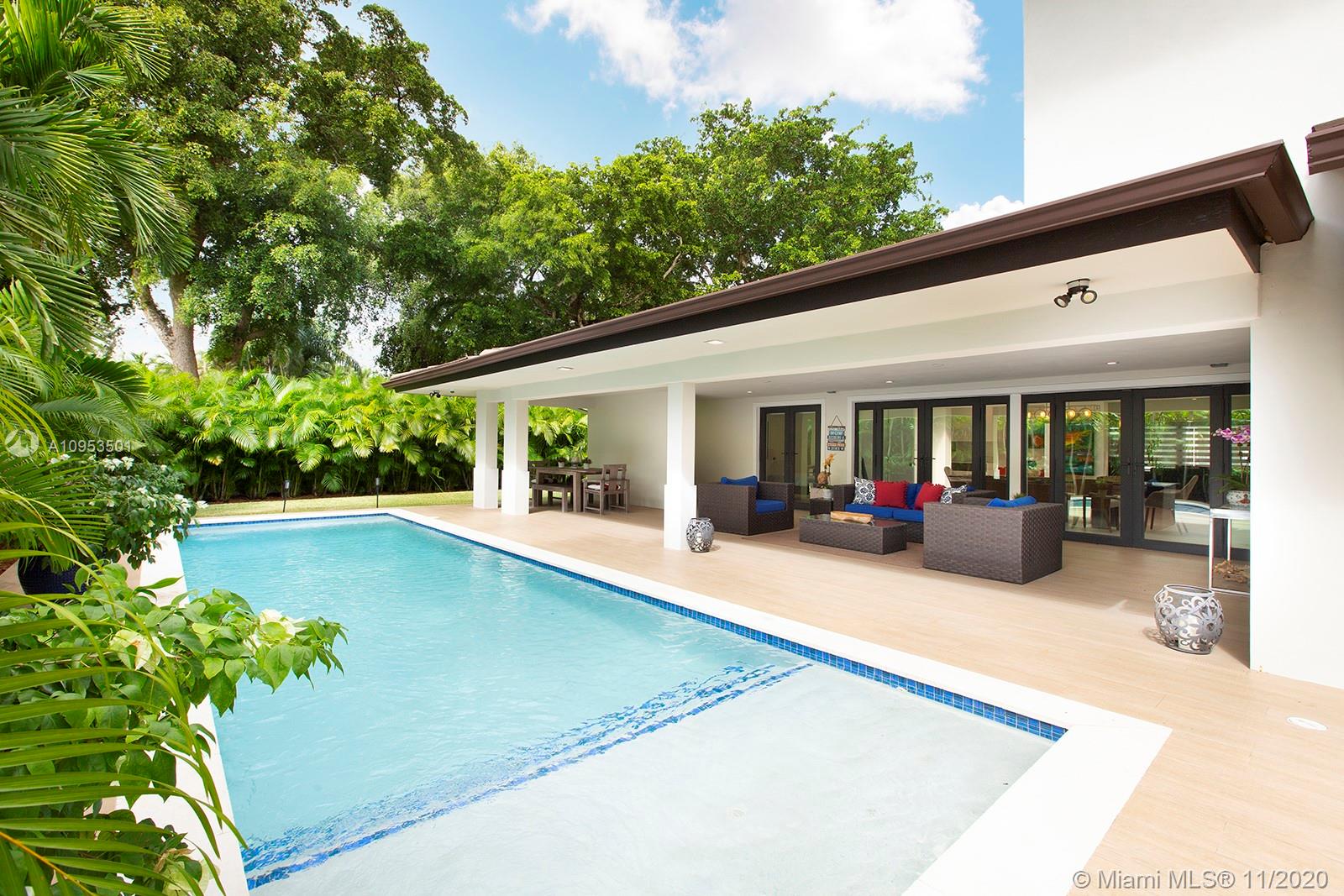 Complete Renovation. Designer Decorated. Total Sq.Ft. 4701 corner lot. Completely walled with 3 access gates. No expense spared. Brand new plumbing, roof, electrical, A/C's, septic tank and new saltwater pool with WiFi LED multicolor lighting. All high-end integrated appliances. Compac quartz countertops. Italian calacatta marble Bar area. All hurricane impact windows, doors and skylights. 3 bedrooms downstairs private master upstairs. Too many exquisite details. This home is a rare find.