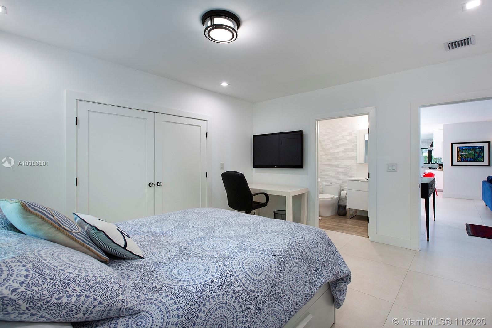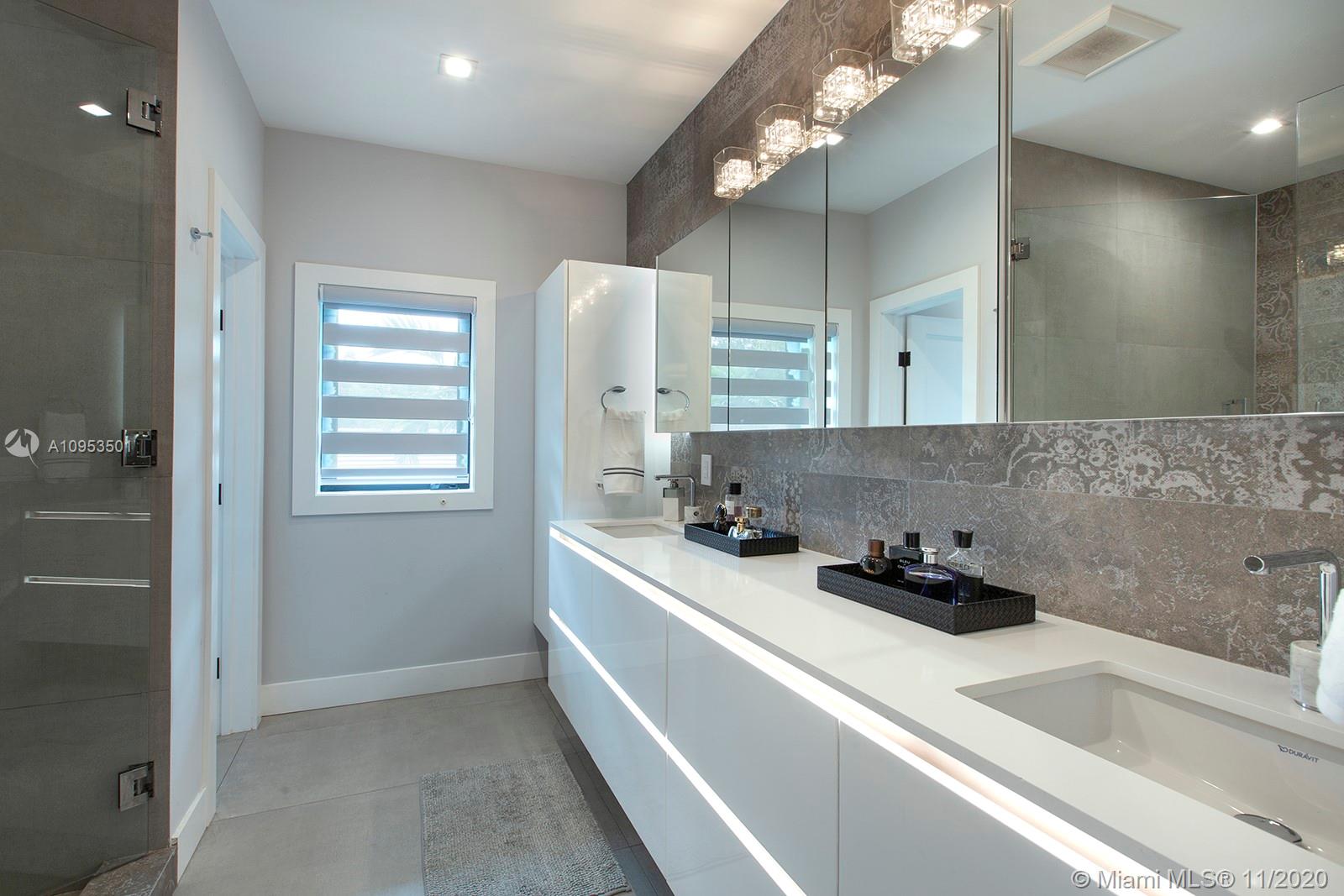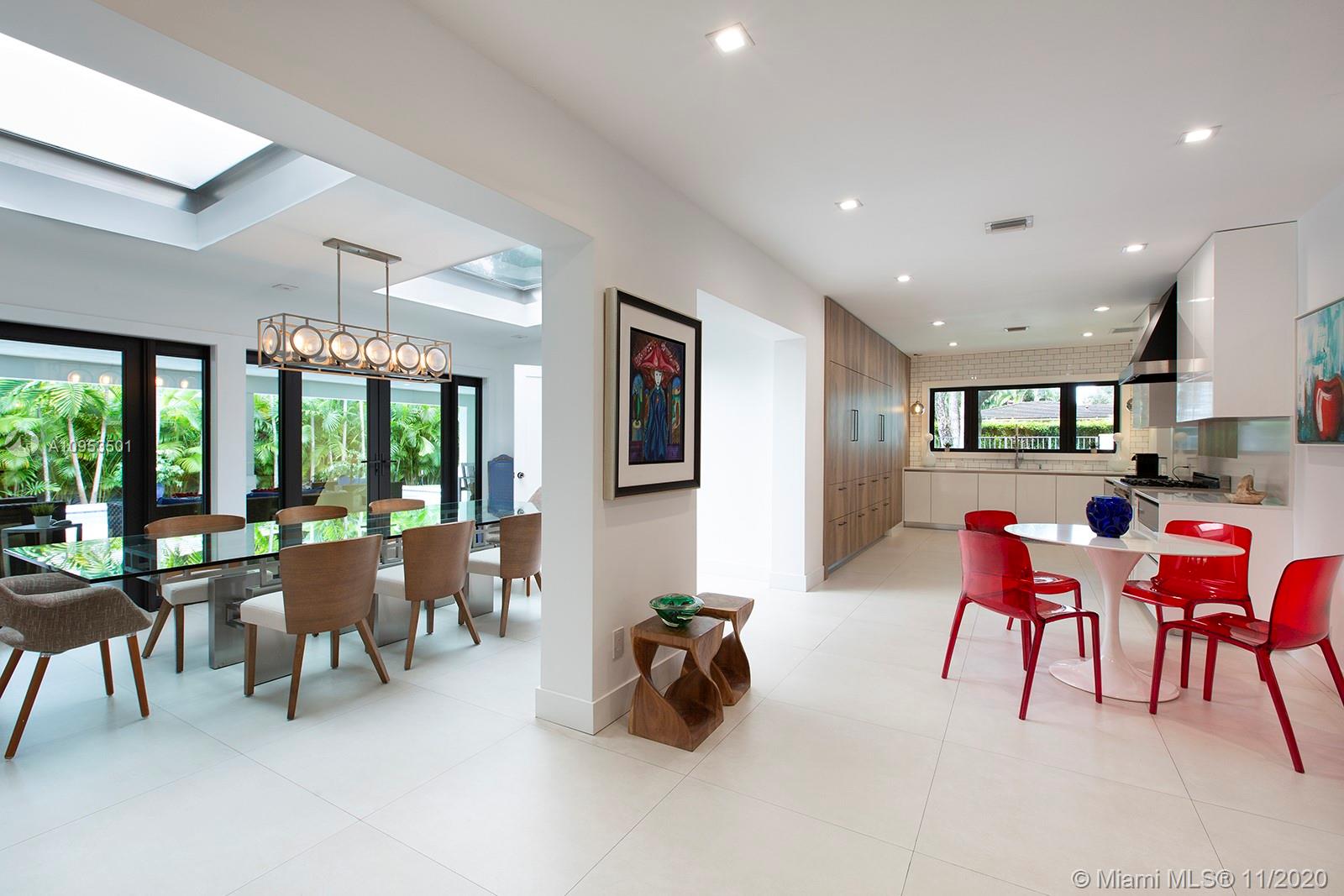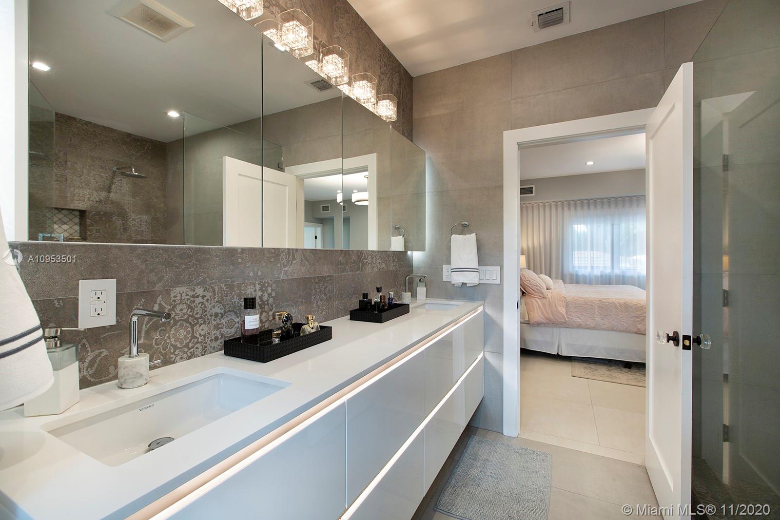 Complete Renovation. Designer Decorated. Total Sq.Ft. 4701 corner lot. Completely walled with 3 access gates. No expense spared. Brand new plumbing, roof, electrical, A/C's, septic tank and new saltwater pool with WiFi LED multicolor lighting. All high-end integrated appliances. Compac quartz countertops. Italian calacatta marble Bar area. All hurricane impact windows, doors and skylights. 3 bedrooms downstairs private master upstairs. Too many exquisite details. This home is a rare find.