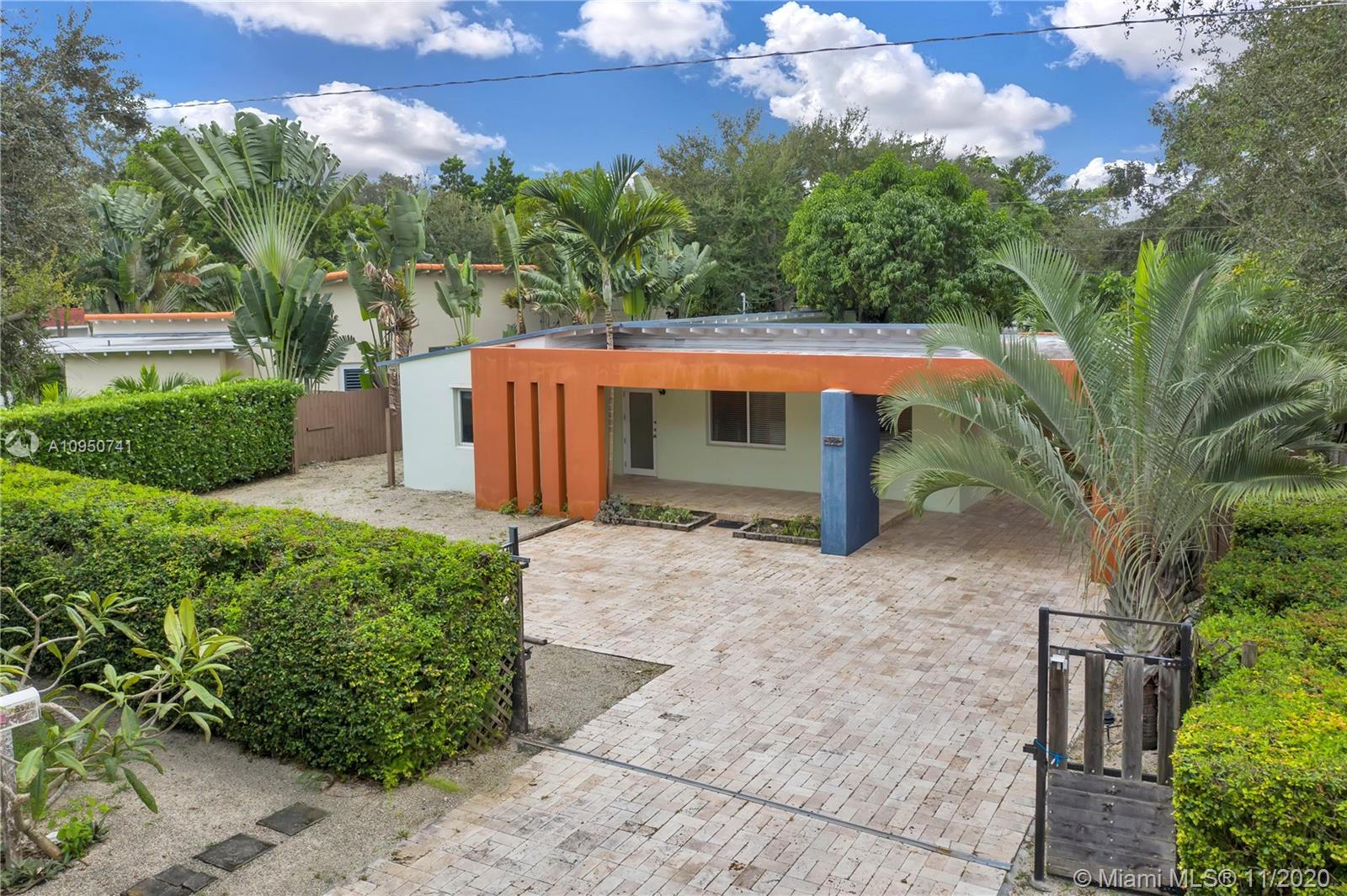 The attention to the modern architectural details of this impeccable home in the heart of South Miami begins with the undeniably “WOW” effect as soon as you enter the property. The home is bathed in soft light and offers a cozy, yet sophisticated atmosphere. The floor plan is also graced by a spacious family room where beyond the home’s large windows and glass doors, the gorgeous backyard beckons for your attention. From its vaulted ceilings and updated kitchen and bathrooms to the spacious bedrooms and the inviting lap pool in the tropical garden, this home is primed for its newest owner. Built on over 10,000 square feet of land and surrounded by luscious grounds, wooden fences and a front iron gate, this property is perfect for privacy seekers with a desire for beauty.
