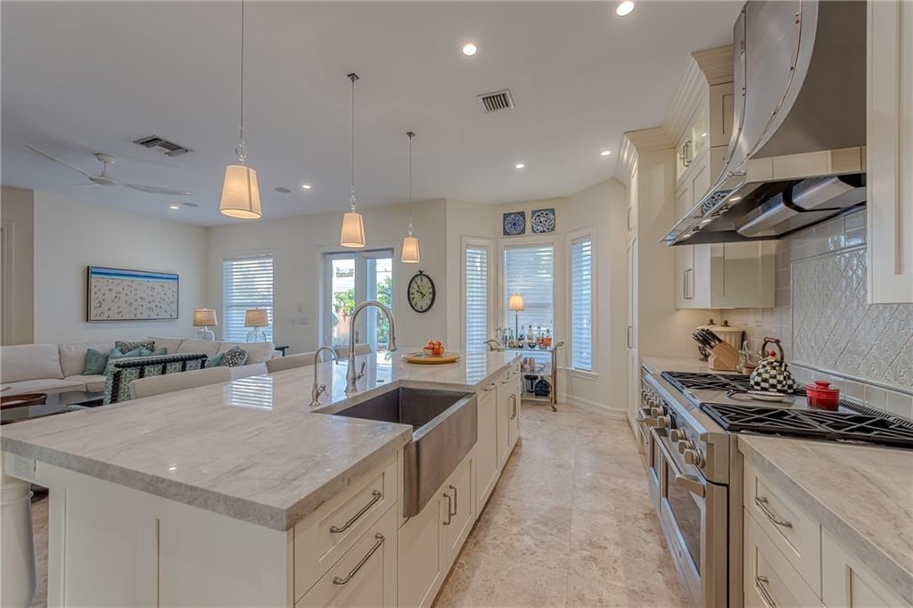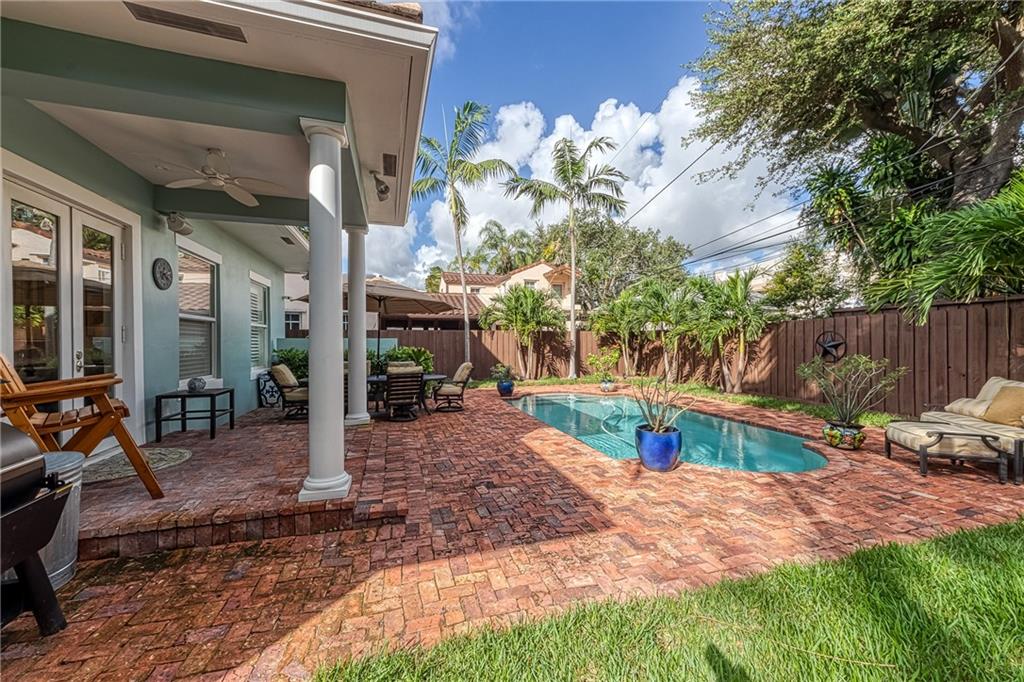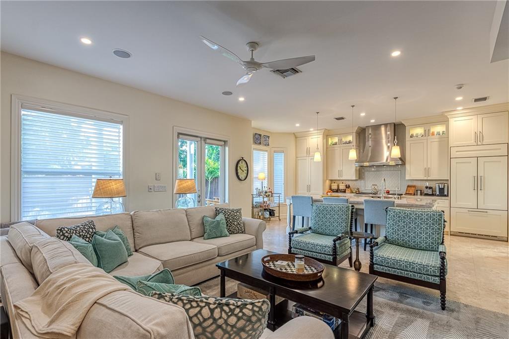 Take advantage of this rare opportunity to be located on a great tree-lined street deep in the heart of Rio Vista. This 2005 build has been updated with a gorgeous kitchen, modern bathrooms, custom built-ins and everything else you would expect from a luxury home. The house features 2 downstairs bedrooms and 3 bedrooms upstairs, which offers plenty of options for you and your family. Bonus amenities include a 2-car garage, gas range, hurricane impact windows and high ceilings.