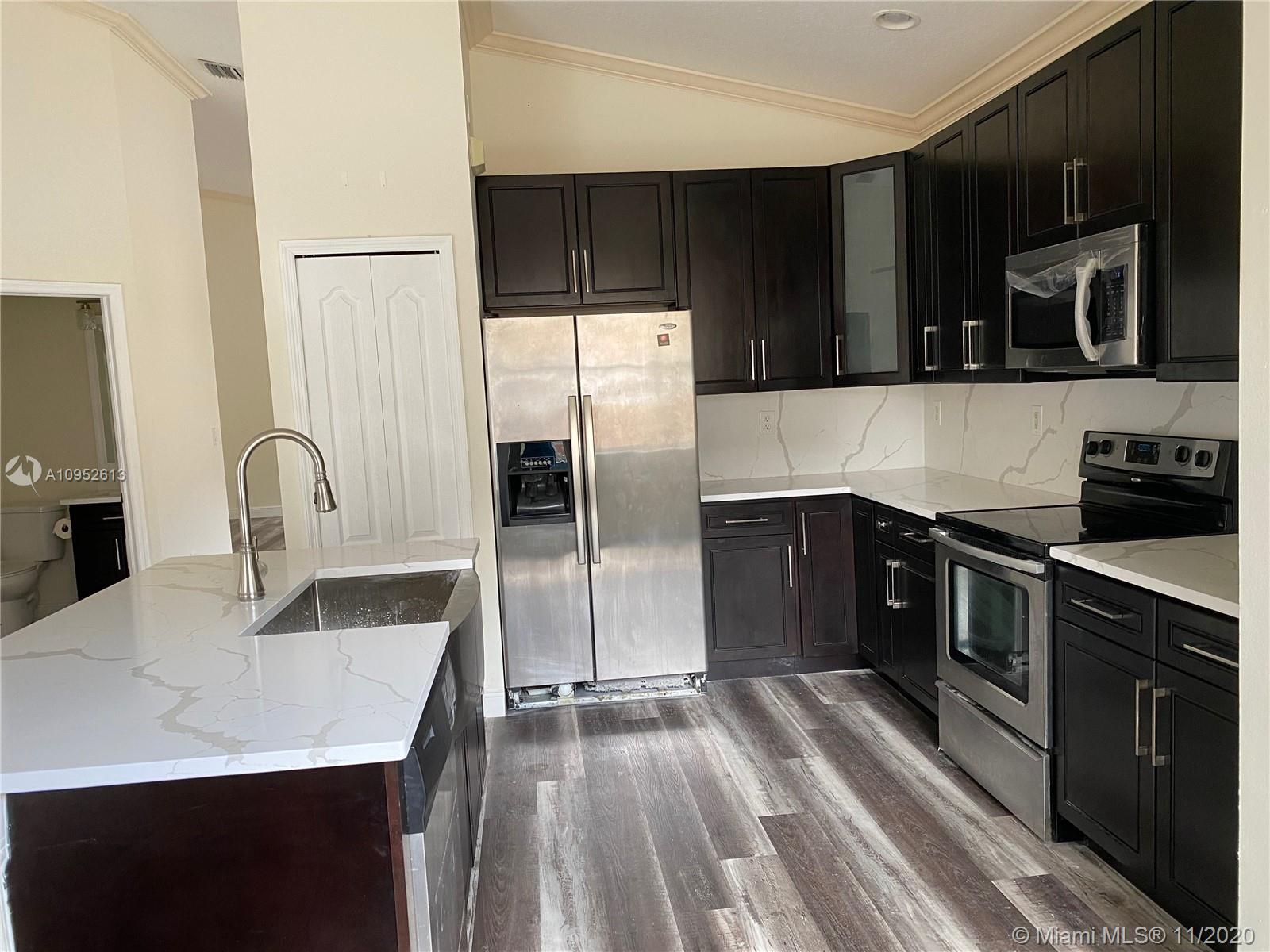 Totally redone house ! TASTEFUL New kitchen with solid wood cabinet and beautiful CALACATTA countertop. NEW installed Beautiful WATER proof Vinyl through out the house. New vanities installed in 3 bathrooms. NEW installed accordion hurricane shutters. Come to see this model home! This gorgeous single-family home features 4 Bedrooms, 2.5 Baths. This house has great high vaulted ceilings that give it a bright and airy ambiance. Functional split floor plan with a large master bedroom, master bathroom & custom-built walk-in closet. It also features a big family room & an eat-in kitchen with stainless steel appliances. Gated Community, low HOA fee. New shopping plaza just opening at the corner. Hurry ! It won't last !