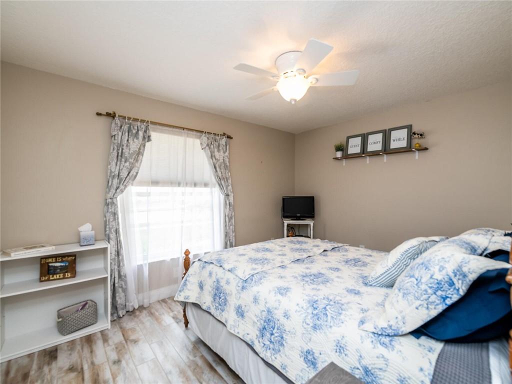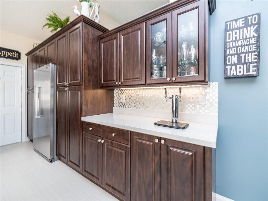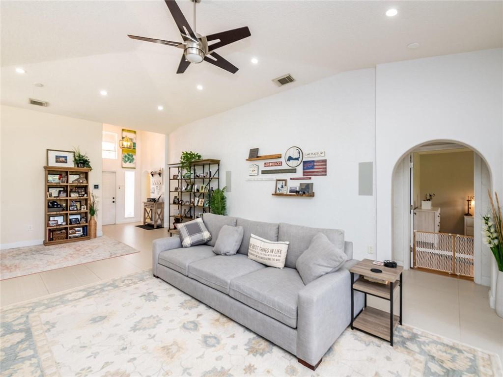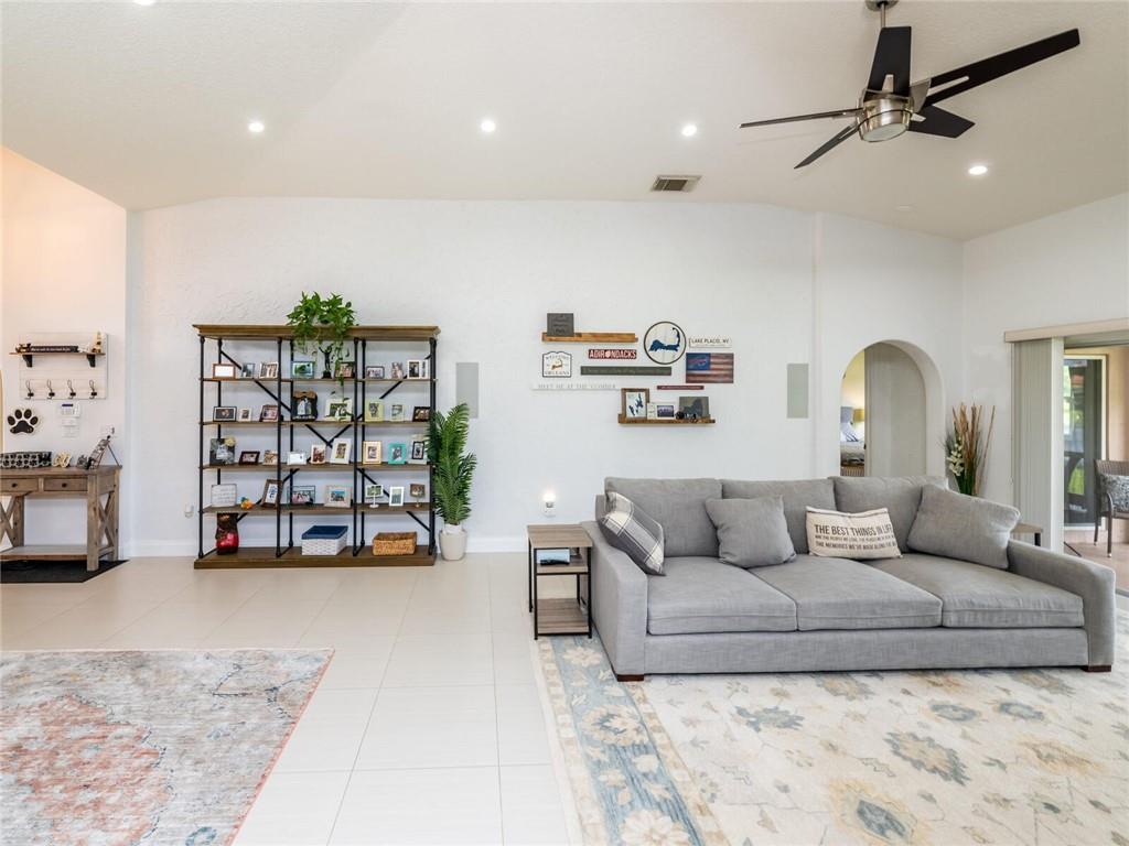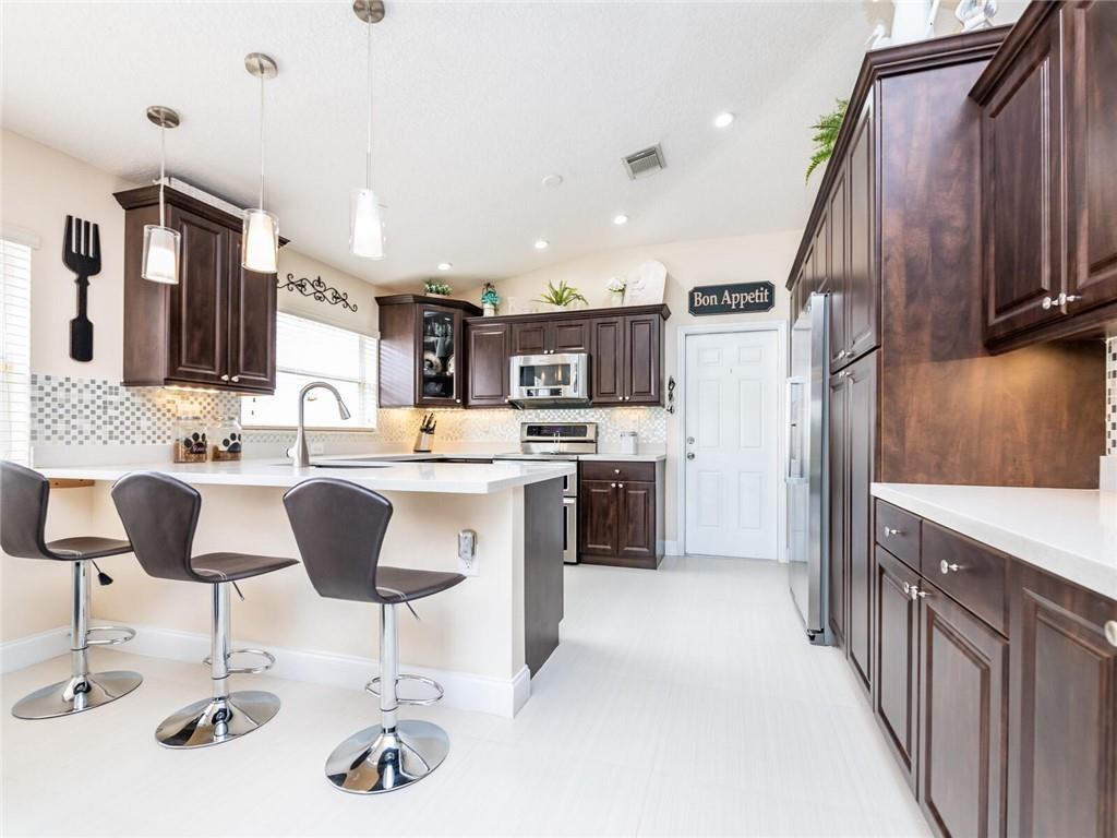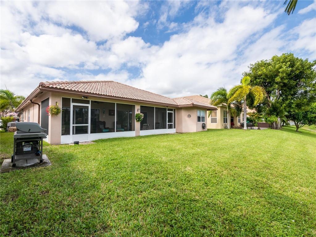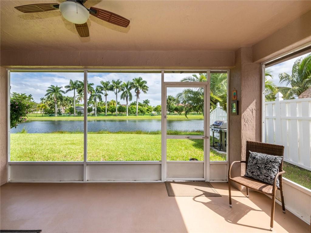 Beautiful home with gorgeous view of the lake in exclusive WINDSOR PALMS gated community. Very open and spacious living areas, both living room and family room, with tile throughout. Split-bedroom floor plan. Large, spacious master bedroom with dual walk-in closets and a view of the lake. Master bedroom and living spaces open to a screened-in patio. Stunning gourmet kitchen with dark wood cabinets, quartz countertops, and stainless-steel appliances. Great curb appeal. Priced to sell quickly!