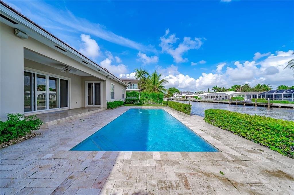 Newer construction waterfront home in The Landings! This transitional design only 5 years old by local award-winning builder is the absolute dream home for today's buyer. Over 9,000 square feet of land with large swimming pool & beautiful covered loggia to maximize time outside in today's heat! Inside boasts over 3,700+ sq.ft. with a 3-car garage, 5 bedrooms/4 full baths. Fifth bedroom is best as front office/den with glass doors & tons of light. 12' ceilings with large kitchen open to living & dining areas & perfectly sized breakfast nook overlooking the water. Oversized master bedroom has its own side of the house with 2 substantial closets & large ensuite bathroom with private water closet & separate tub/shower. Beautiful light marble floors inside & out. 5 minutes to Pinecrest School.