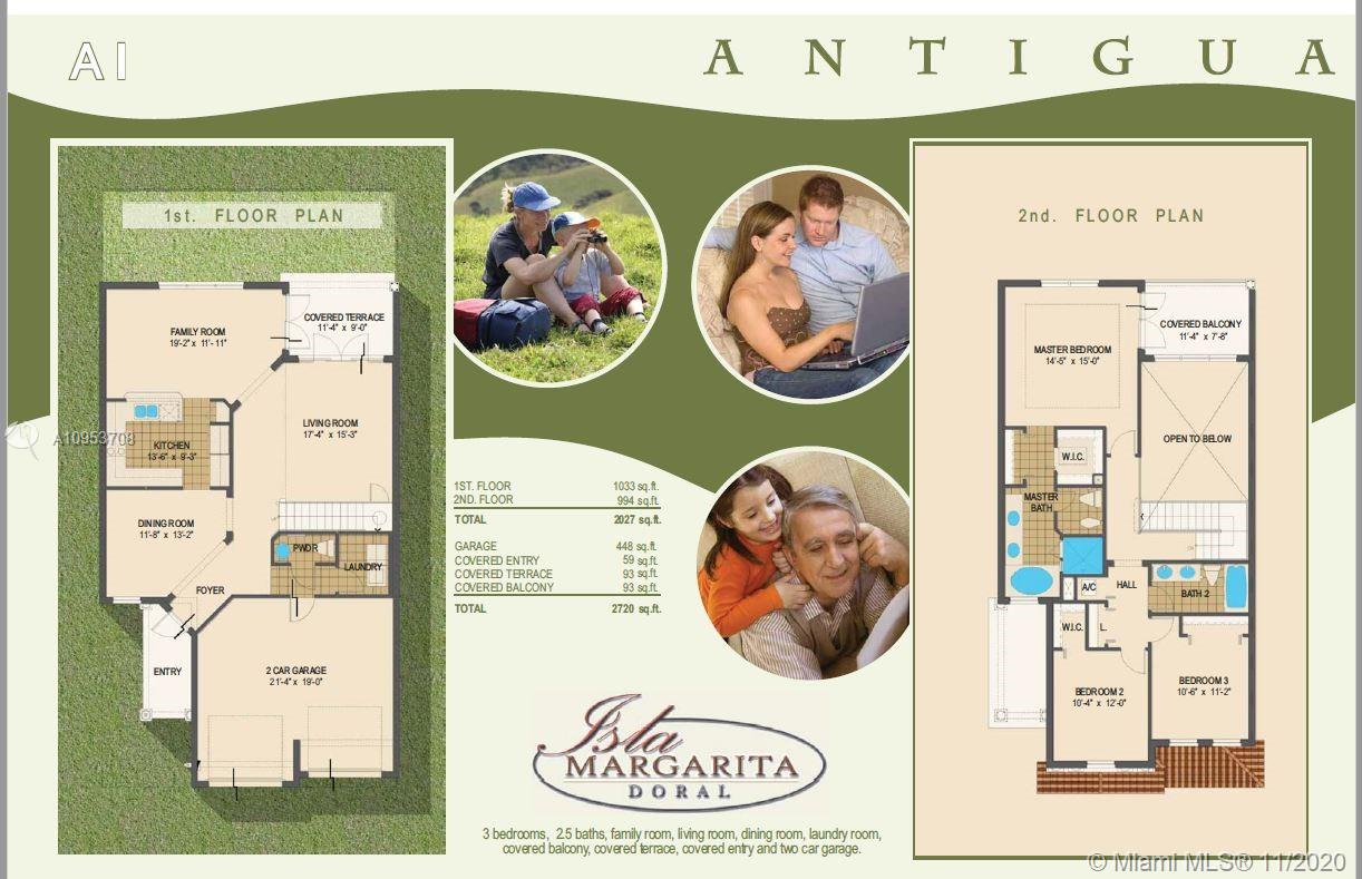 Charming Town-home in quiet residential neighborhood. Kitchen with Stainless Steel appliances and quartz counter tops. wood floor on the first and second floors, 2 car garages, laundry room, and accordions shutters !!! A+ schools and major highways. Call listing agent for showings. Don't miss out on this home at "Isla Margarita At Doral"