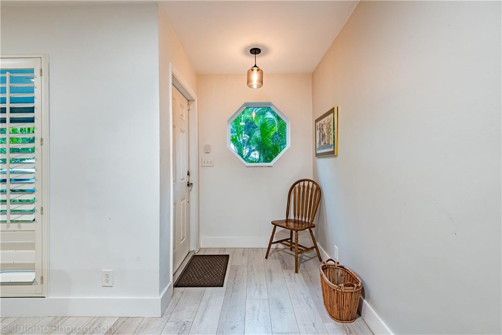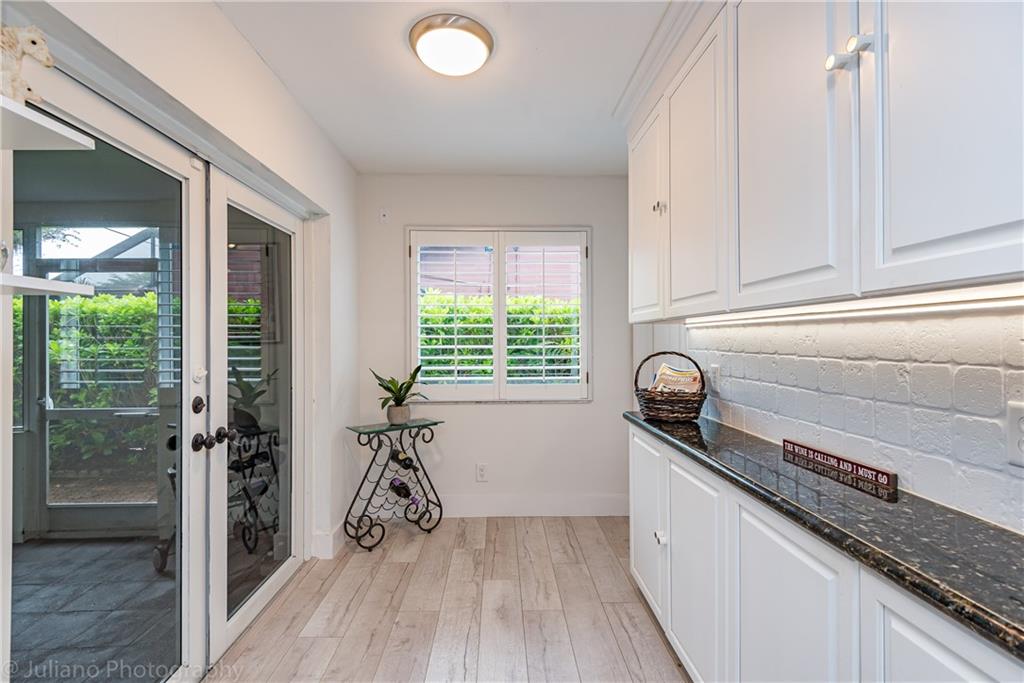Modern, bright and spacious home in sought after Imperial Point. Wide plank flooring throughout, large office off living room, plantation shutters, and impact windows and doors. Bathrooms and kitchen beautifully updated. Master Bedroom with Walk in Closet. Enjoy the huge screened in Lanai overlooking the garden. Laundry room under air + storage room off carport. This 2BR/2.5 BA home (can easily be 3BR) sits on an oversized corner lot. Just 2.5 miles from the beach, near restaurants, shops, hospitals and more.