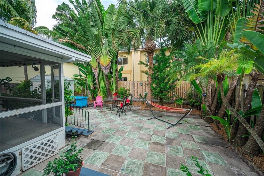 Classic Victoria Park design lovingly updated and situated in a secret garden. This 2BR/2BA offers a spacious living/dining room, eat-in kitchen, a primary suite with sliding doors to a patio plus a screened porch overlooking the fenced private yard and terrace. Recent improvements include; impact windows/doors, composite roll roof, HVAC system, renovated Primary bath plus an energy efficient solar hot water heater. Additional features include; natural gas cooking, hardwood floors, a gated, fenced yard, an additional gated parking area, a garden shed and a large sun terrace surrounded by gardens. Zoned multi-family this property affords several possibilities.