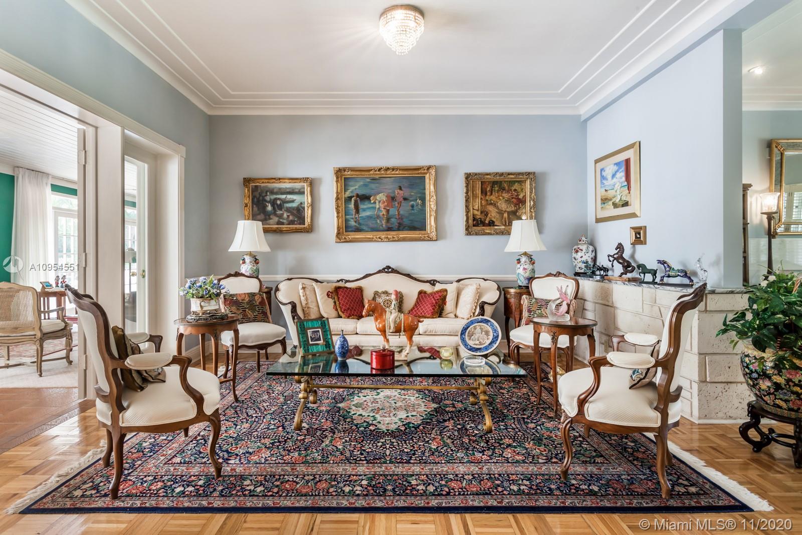 Classic Coral Gables corner home on prestigious Granada Boulevard. Located on a 12,900SF lot, this elegant 3 bedroom, 3.5 bath home boasts 3,594SF of interior space. This residence offers spacious living areas, including two formal living rooms, formal dining room, eat-in kitchen, and a large entertainment space/family room with a bar. French doors open up to an outdoor patio/lush garden, that can accommodate a future pool. Featuring large bedrooms with en-suite bathrooms, including a Master suite with exceptionally large closets. Superb location, and walking distance to, Riviera Country Club, and University of Miami.