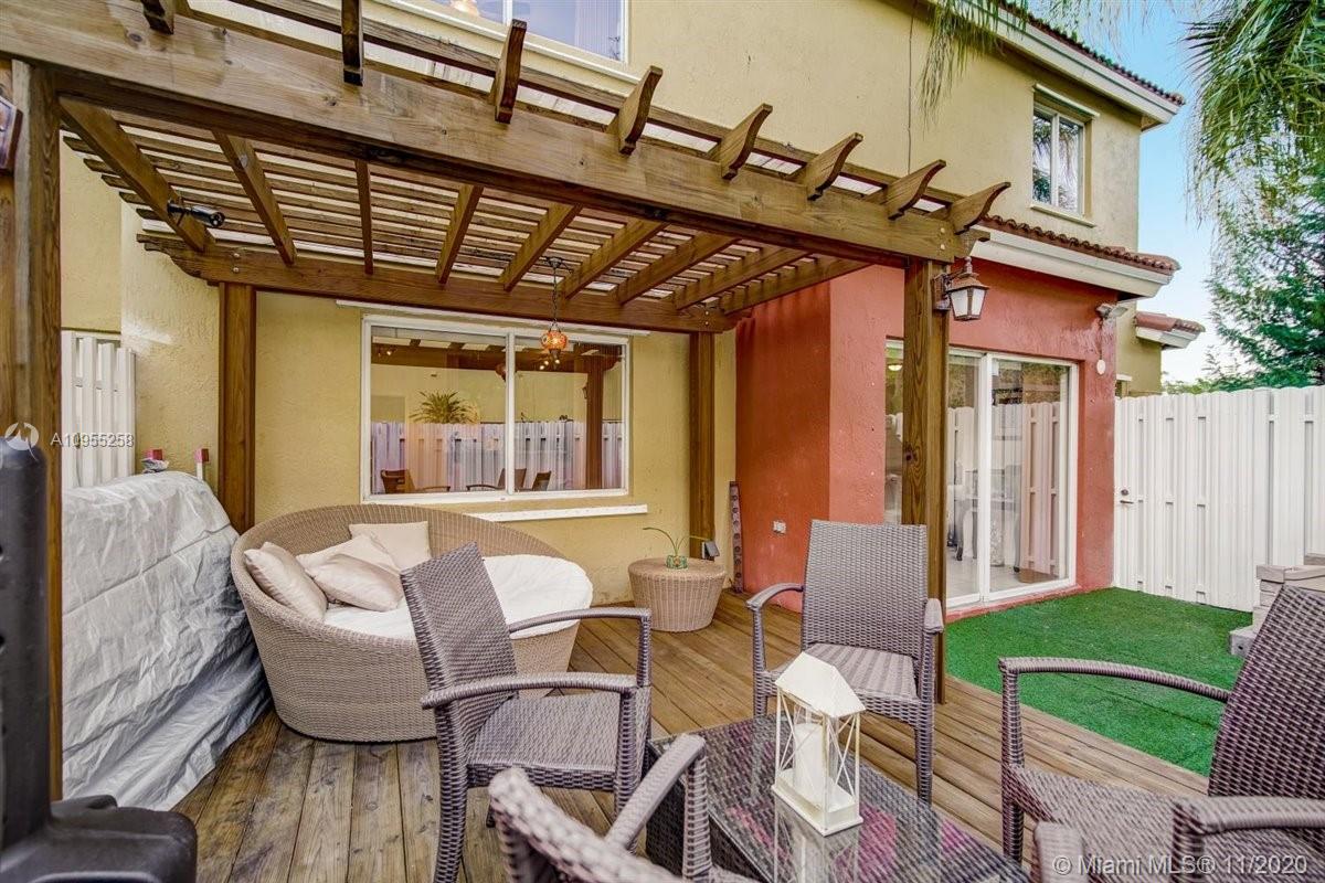 This beautiful semi-detached 3 BR/2.5 Ba townhouse with recent improvements is a winner! On a quiet dead end and building corner (1 neighbor only) in gated Avalon community, with lovely zen garden, attractive covered wood gazebo, deck area and panel metal fence. Features gorgeous granite counters, deep sink, bonus pantry, newer roof, new robust 16 SEER central AC (cools garage too), tile and wood floors. Interior freshly painted in neutral off-white and mocha accent tones. Upstairs washer & dryer, cool loft (office, play or TV area) and attic storage. Lots of closets, driveway fits 4 vehicles. Near highly rated schools, Pembroke Lakes Mall, Shops at Pembroke Gardens, other great shopping centers, hospitals and FL Tpke, I-75 and I-95. Lender pre-approval needed to schedule showing.