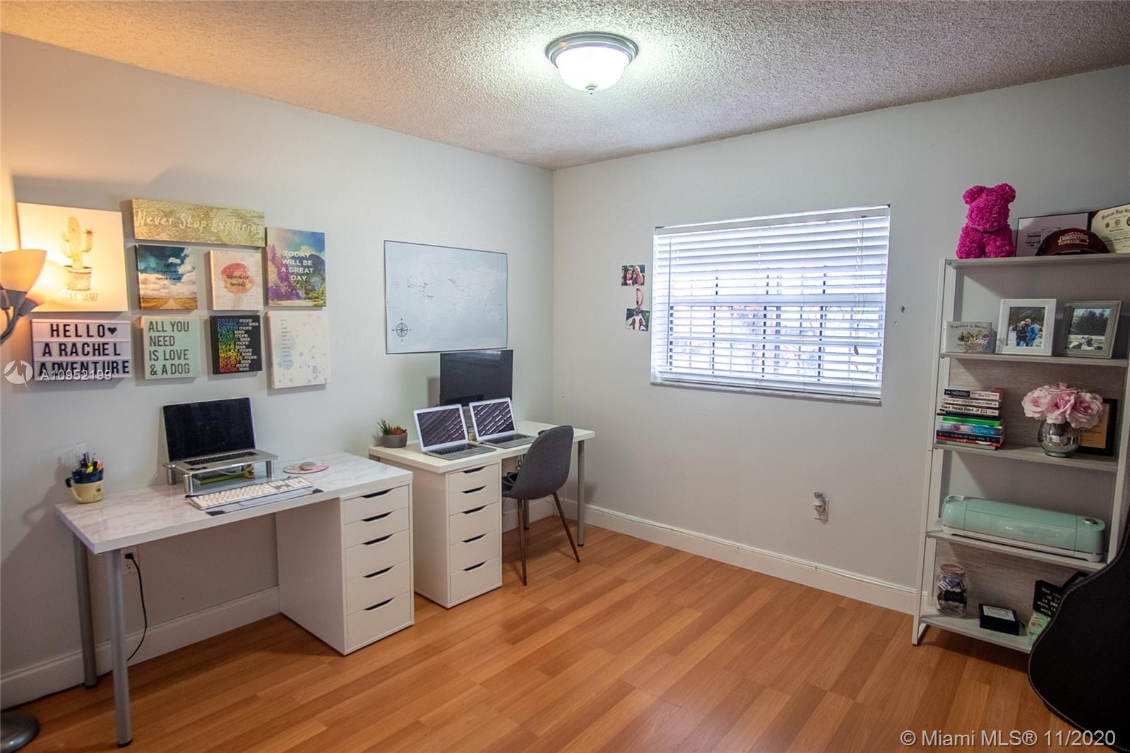 Beautiful & private corner townhome located in the quiet & safe neighborhood of The Townhomes of Country Village. One story corner home offers lots of natural light throughout its' open concept floorplan. Split layout features 2br/ 2ba & distributed across 1,313 sqft. Everything is meticulously cared for & fully updated. Spacious kitchen features granite countertops, custom cabinets w/ample storage space & SS appliances. Bathrooms are in contemporary fashion. Tile floors in the living space & wood floors in the bedrooms. Recessed lighting & upgraded lighting fixtures. Garage converted to room/office w/storage space. Separate laundry room. The home backs to the Country Village Park offering more privacy. Low HOA of ~$90/m. 2 parking space + guest parking.