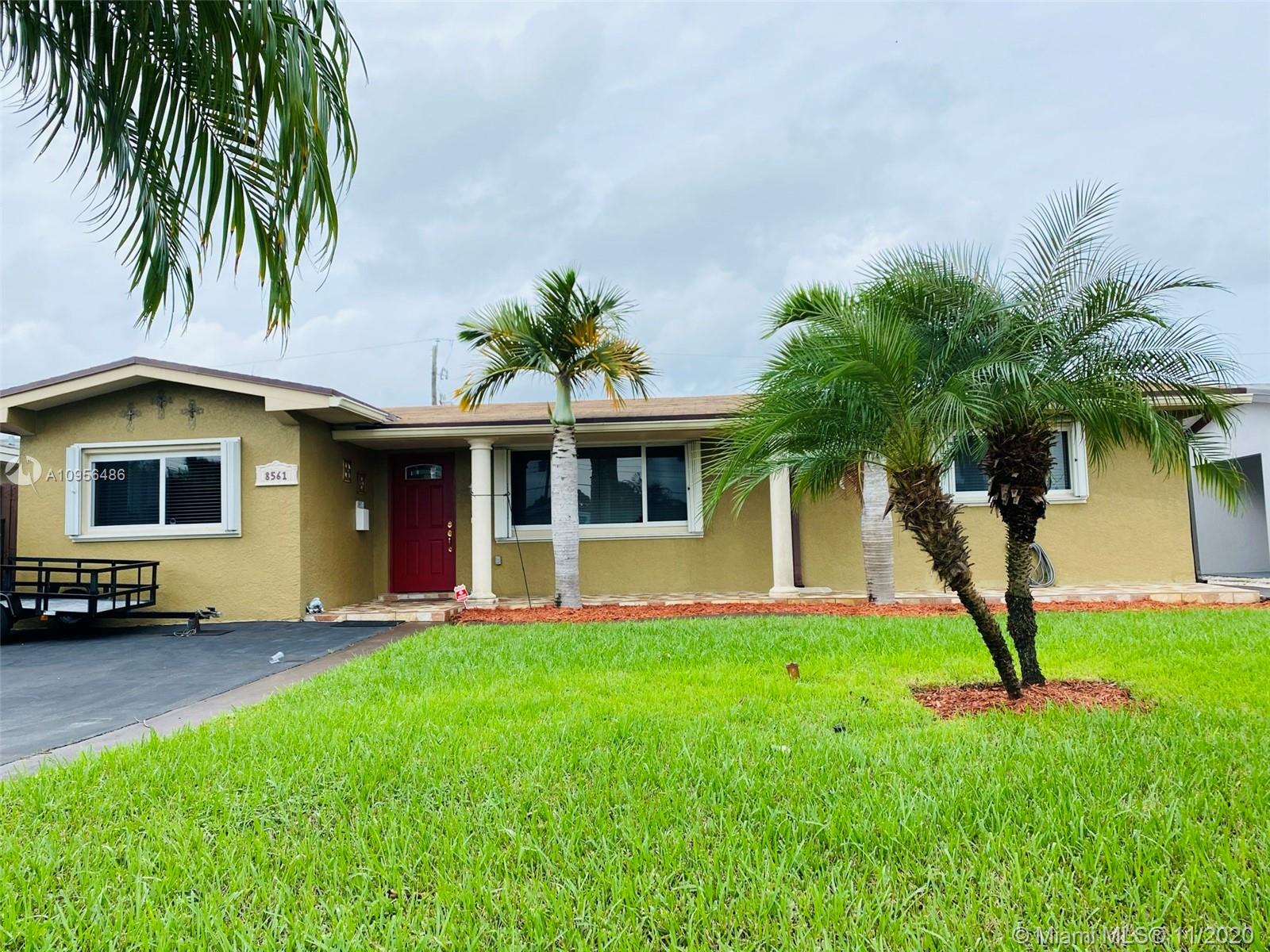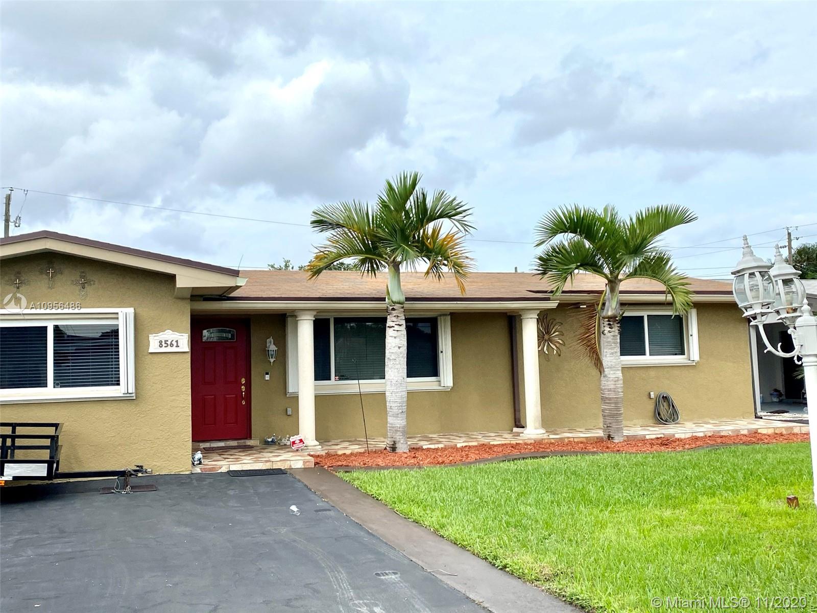 Beautiful three bedroom property with great curve appeal! This property has a family room, screened in patio & a spacious utility room with lots of storage space. The third bedroom was built with permits and has a walk in closet. This property features a one year old roof, updated electrical, updated kitchen with granite counter tops and a new refrigerator, updated bathroom, new windows, accordion shutters and hurricane proof doors. Enjoy Florida living in your low maintenance backyard with a large concrete area for entertaining, a hurricane resistant shed and beautiful palm trees. Located in the heart of Pembroke Pines, very close to the new Pines Center, schools and shopping. No association!!!