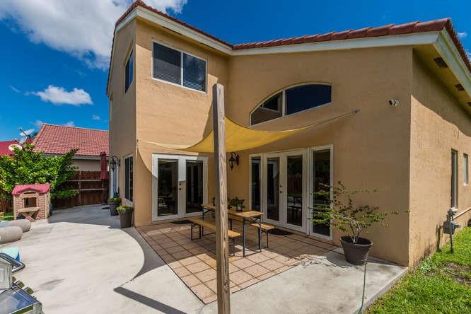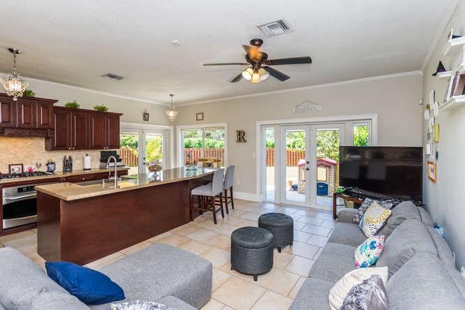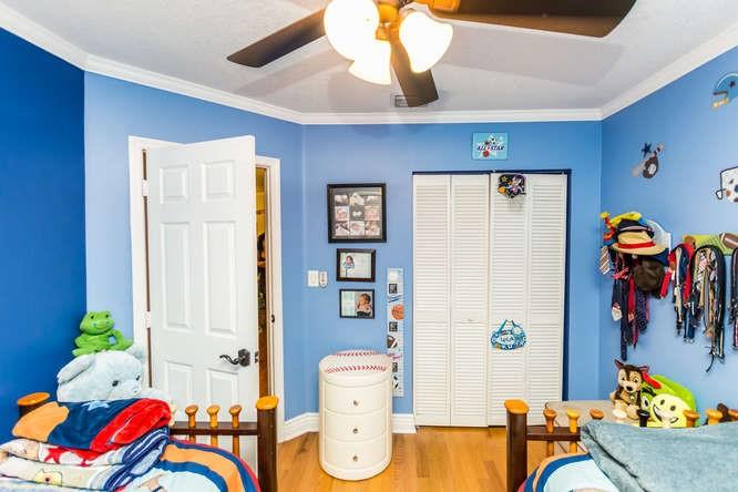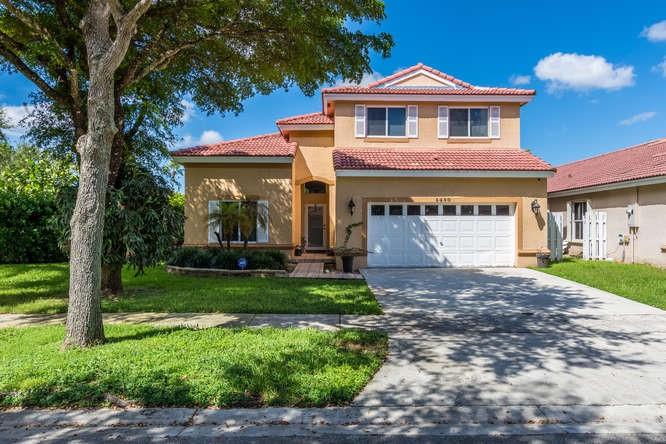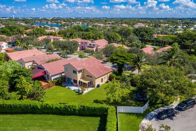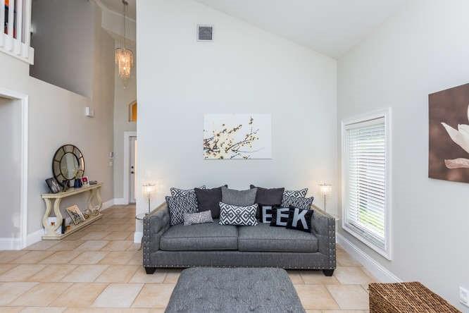 Shows like a model, 4/3 with over 2400 sq ft. Best location on cul-de-sac street, over sized fenced lot with extended cement patio. New kitchen, stainless steel appliances, impact windows and doors, redone master bath, knockdown ceilings, crown molding and custom baseboards. Natural gas dryer, range and water heater. One bedroom and bath downstairs. 24/7 security plus sprinkler and basic cable included in monthly maintenance. Close to schools and I75 in nicely maintained community.