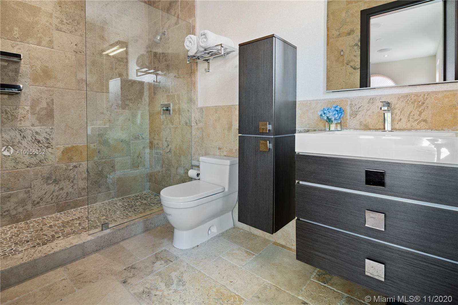 Beautiful modern house, designed by renowned architect Robert Wade. This family home located in the prestigious gated community of Deering Bay in South Coral Gables offers flawless upscale living. High ceilings, gourmet kitchen features Italian cabinetry, quartz countertops & top of the line appliances. Open layout flows directly to open terrace overlooking to the infinity pool and lagoon. Oversized master suite with custom closet cabinetry and spa-like bath. 3 additional bedroom all with suite bathrooms. This house has a generator, smart tech with mobile controls, elevator, led lights, propane tank, and laundry room. Top of the line ceiling fans and 3 energy efficiency A/C units.