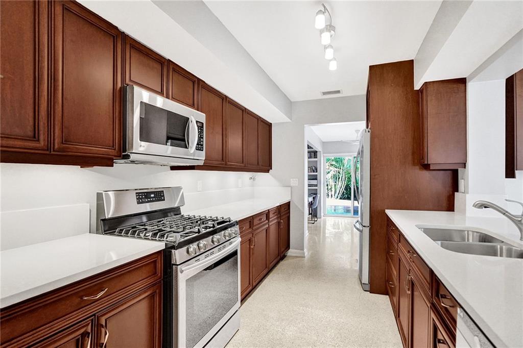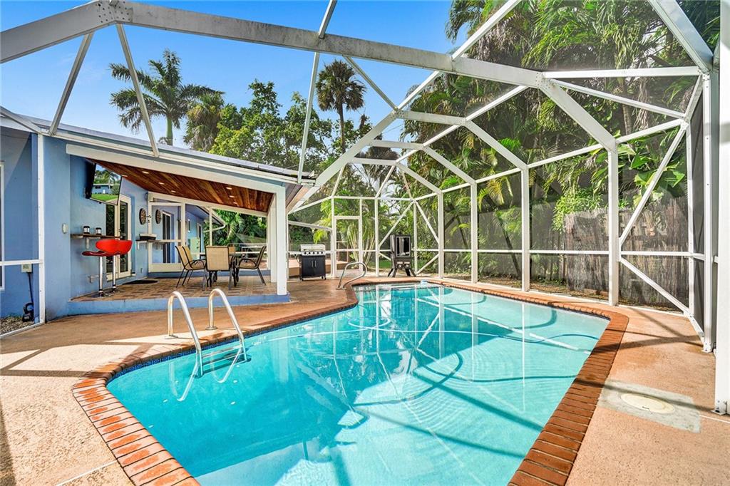 If you are looking for open living space with separate areas for office space, schooling, crew housing or whatever your needs may be, this home is able to accommodate! PLUS, a HUGE double lot w/outdoor living area, a screened porch with beautiful wood ceiling, pool and spa, a gigantic deck, & yard space big enough for a baseball team! Inside the big items are done - IMPACT WINDOWS & DOORS throughout, New HVAC, System, Updated Electrical. The galley kitchen has been updated with Solid Wood Cabinetry, Stainless Appliances, GAS Stove, & new Quartz Countertops. Permits for 4th bed & bath. TERRAZZO throughout most of house. (Can be sold with 1015 SW 21 ST, next door as a package deal) Located within minutes of highways, airport, boat yards, Downtown and Beaches.