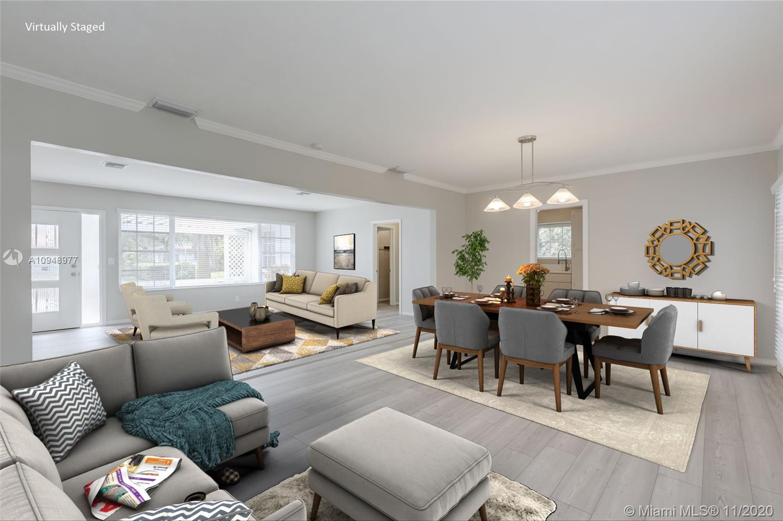 Located on the east side of Miami Shores. 3 Bedrooms/2 full Baths with a split floor plan. Lots of lights and windows with big open living and dining areas greet you with all newly installed vinyl waterproof high end floating floors that give the house a modern touch. Both bathrooms are fully remodeled. Lots of closet space. Very large kitchen with SS appliances plus a one-car garage and a backyard big enough to place a pool. Sprinkler system. Perfect for entertainment. Enjoy all the Miami Shores Village has to offer with lots of kids activities, summer camps, golf course. Houses of worship close by as well as great private schools. House is located two blocks from the bay. READ BROKER REMARKS FOR SHOWINGS