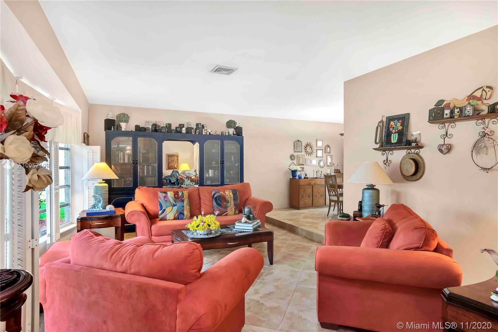 This CHARMING ranch style POOL HOME in Hollywood Hills is an ENTERTAINER'S DELIGHT awaiting your personal updates. Enter the foyer overlooking a large living room that flows into the formal dining room. The BRIGHT, eat in kitchen features plenty of storage and a WALL OF WINDOWS overlooking the pool patio. The family room adjacent to the kitchen is IDEAL FOR EXPANSION w/ views of the pool area from almost every room in the house. The enormous covered patio the essence of Florida Living. The main bathroom has been recently updated and the bedrooms are all large. The garage is also oversized with plenty of room for extra storage. House is immaculate, kitchen and house bath are charmingly original. Move right in and update over time, this home is a must see and won’t last long!