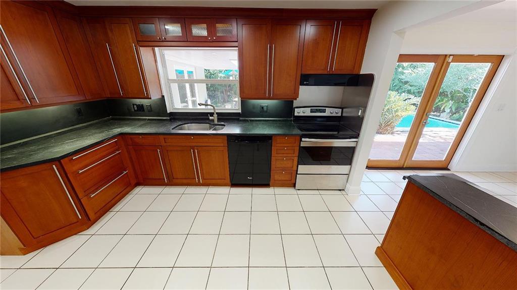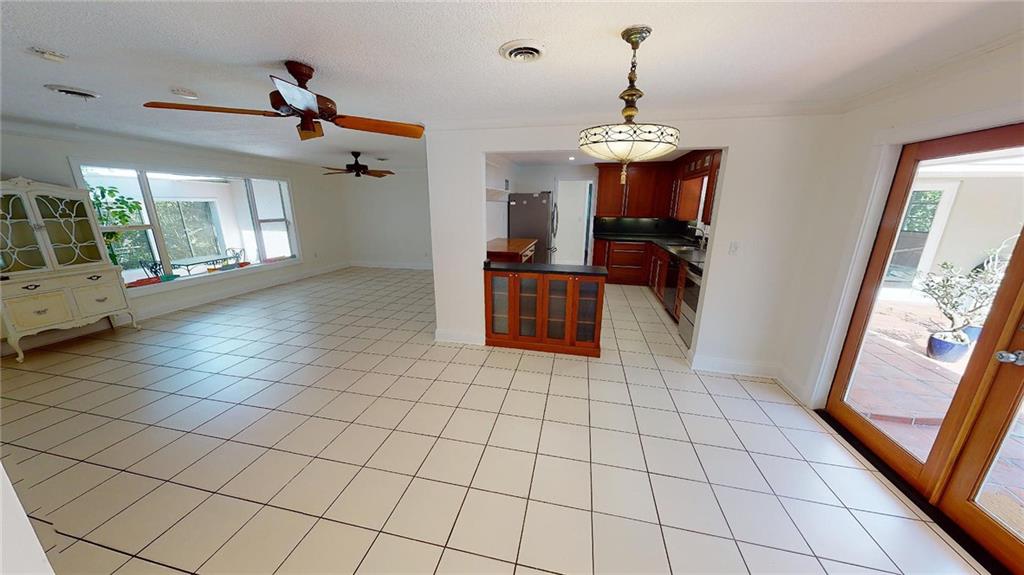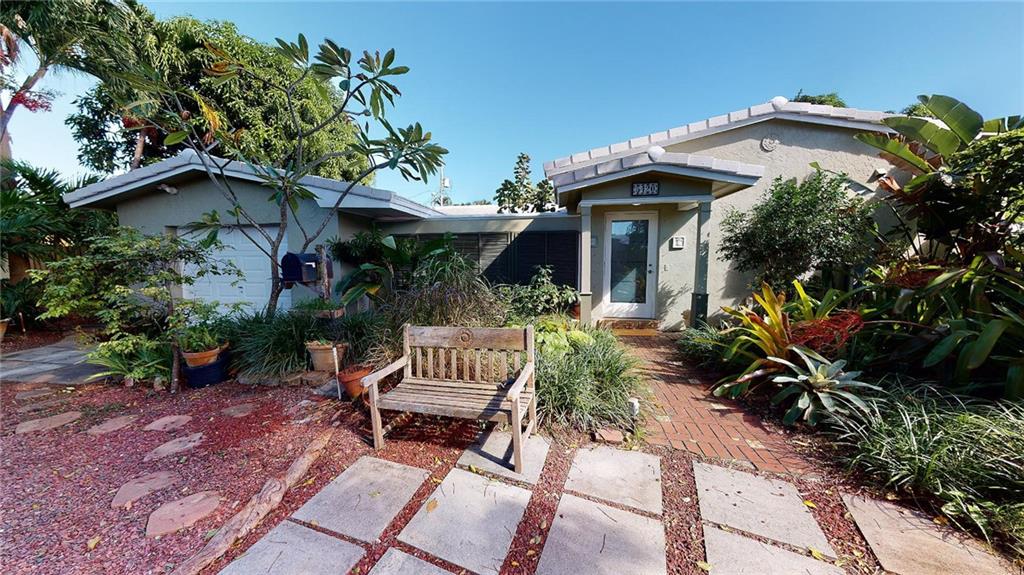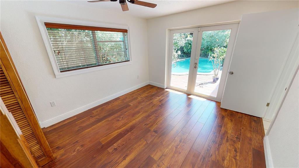3/2 pool home, one car garage. Lushly landscaped, private backyard. Backyard has many fruit trees including mango, starfruit, banana, and more. Cute courtyard just off the front entryway. Split bedrooms with master to the right and guest bedrooms to the left. Master bedroom has a sitting area/den off of it, accessible to the pool/backyard. Master has large walk in closet. Guest bath recently updated. Large kitchen with tons of space and newer appliances. Bedroom floors just replaced, roof was replaced in 2018, electrical panel updated in 2016, pool refinished in 2019. Huge utility room with washer, dryer, laundry sink. Sprinkler system which runs off a well. House has some impact windows and the rest have shutters. Huge mailbox for Amazon package lovers! Excellent location.