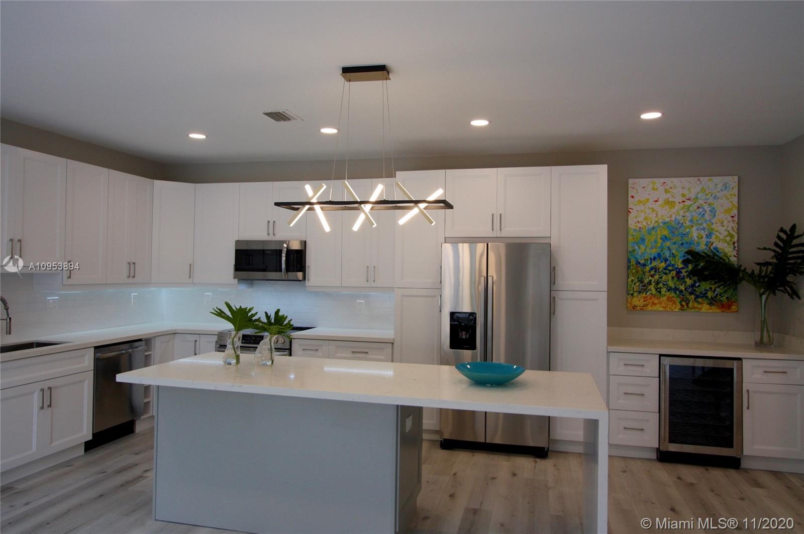 Here is the one you have been waiting for… Spacious and contemporary townhome in gated community near beach & Downtown Hollywood has been completely upgraded! New kitchen with new cabinets and new stainless steel appliances, huge island with quartz waterfall counter. New bathrooms with new cabinets, counters, fixtures, tile and frameless glass shower enclosure. Throughout home there are new wood-look floors, baseboards, paint, lighting and refinished ceilings. New garage door. New washer and dryer. And new roof! Largest and most popular townhome model. Balcony overlooks courtyard. West Lake Village has tennis, heated pool, Jacuzzi, exercise room, clubhouse, kids play area & security. Even if you were considering a single family home, you will find this home very open and spacious.