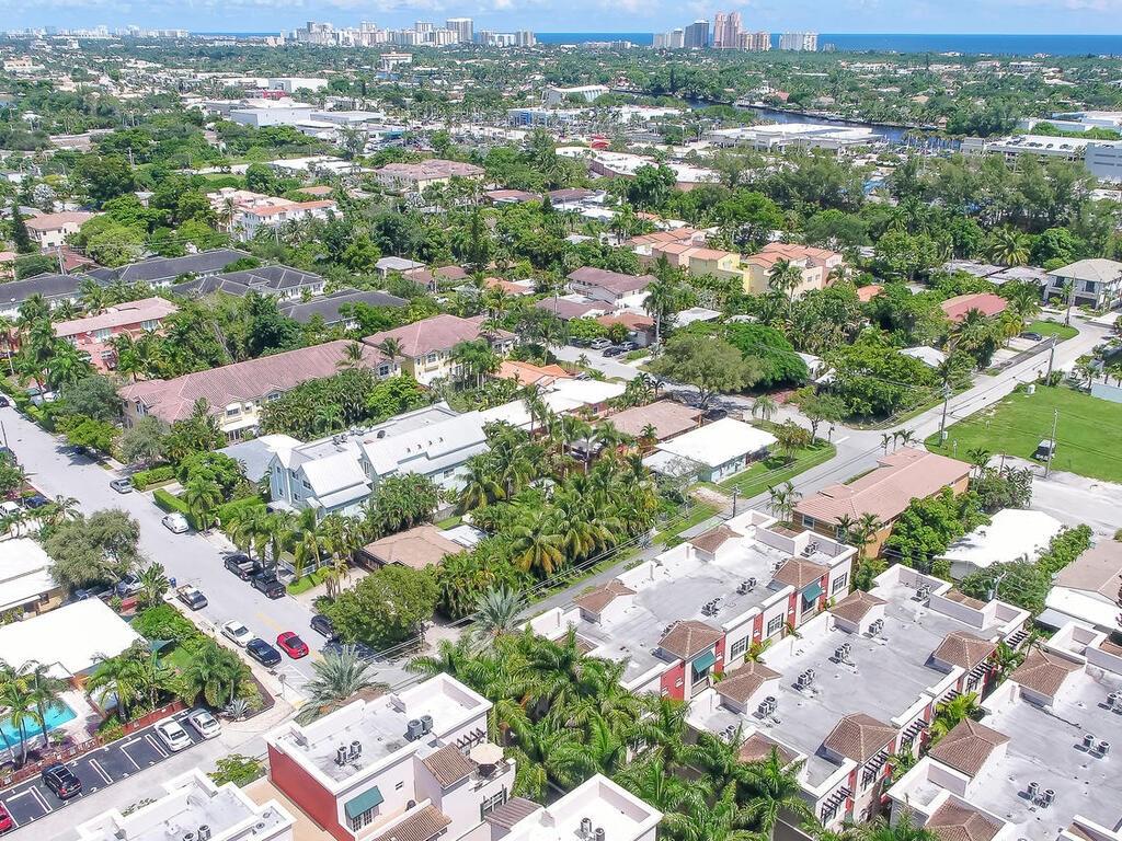 Gated Villa Medici a European Village-Style Complex in the heart of East Fort Lauderdale. Minutes from parks, shopping, the beaches and airport. This well maintained community of town homes offers privacy, security and a community pool. Four floors of living in over 2100 SF of air-conditioned space! Entry level has full guest suite and access to the 2 bay garage. The living level is on Floor 2 with living, dining, kitchen and a powder room. Level 3 offers a sumptuous Primary suite complete with sitting room and two walk-in closets. The top level (4th Floor) has a full guest suite and a walk out roof top terrace. Other features include; 2-zones of air-conditioning, a pantry and walk-in laundry room.