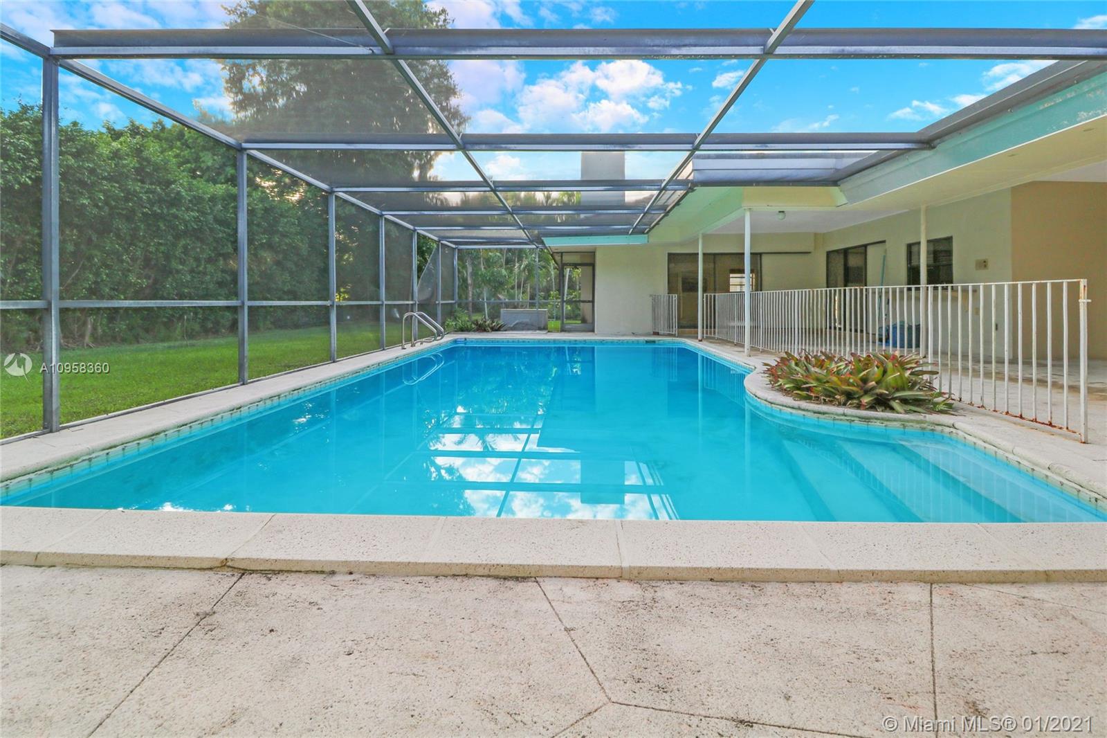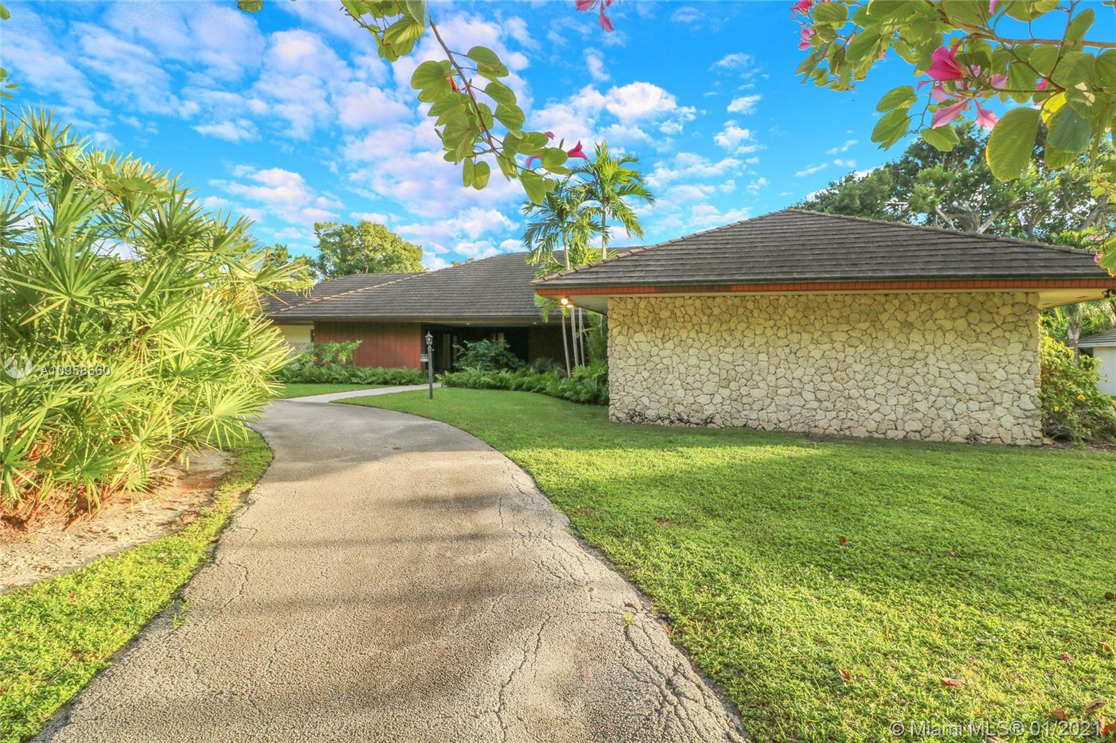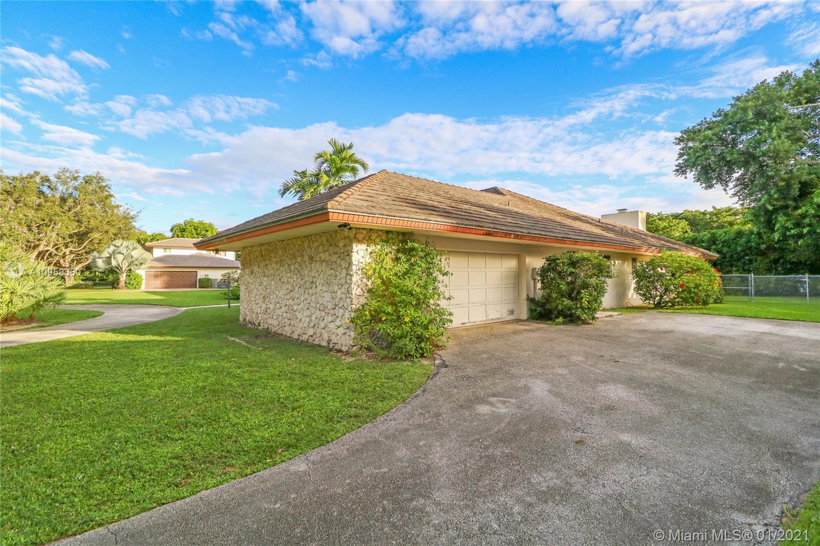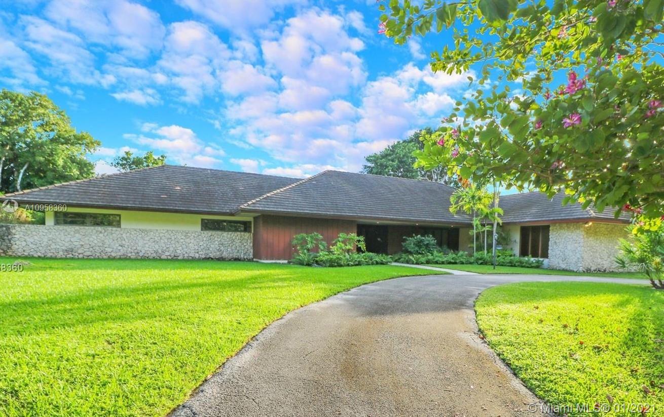 Unique opportunity to own your Coral Gables, Pinecrest-Palmetto school district dream home! This REMODEL-READY 5,283 sqft home w/5 generously-sized bedrooms, 3 ½ baths & oversized 2-car garage sits on ½ acre in prestigious PINE BAY ESTATES CORAL GABLES. This security-patrolled, luxury community is centrally-located at the intersection of tree-lined Red Rd & historic Old Cutler Rd, and is populated with 77 custom-built, multi-million dollar estate homes. The home’s unique features include a vaulted great room w/working fireplace, home office/den w/full bath, expansive covered patio & screened pool, deep walk-in closets. The 800 sqft master suite boasts 2 substantial walk-in closets, dressing room w/2 separate vanities, marble bathroom w/sunken tub overlooking a private walled garden.