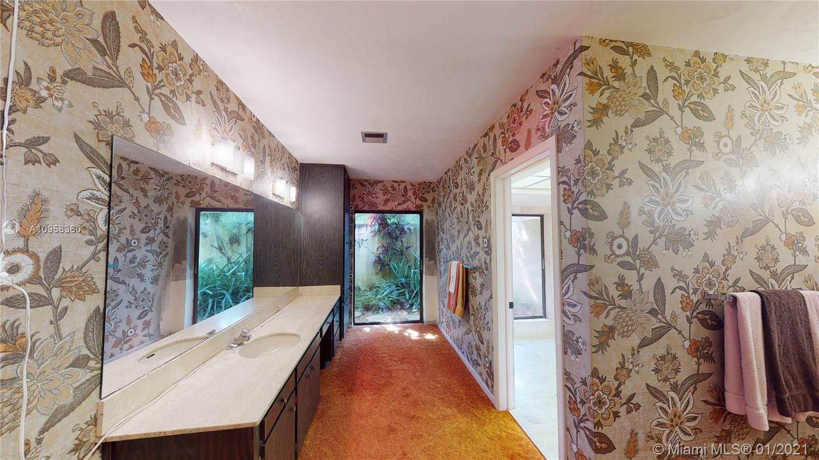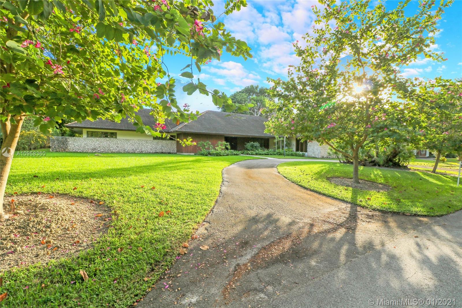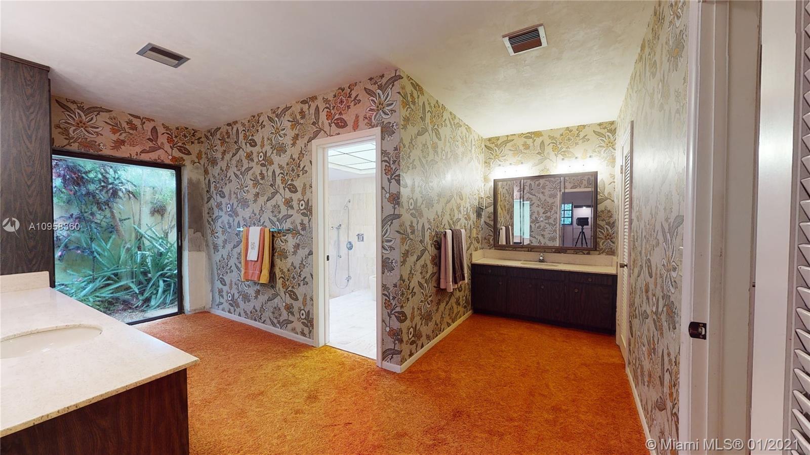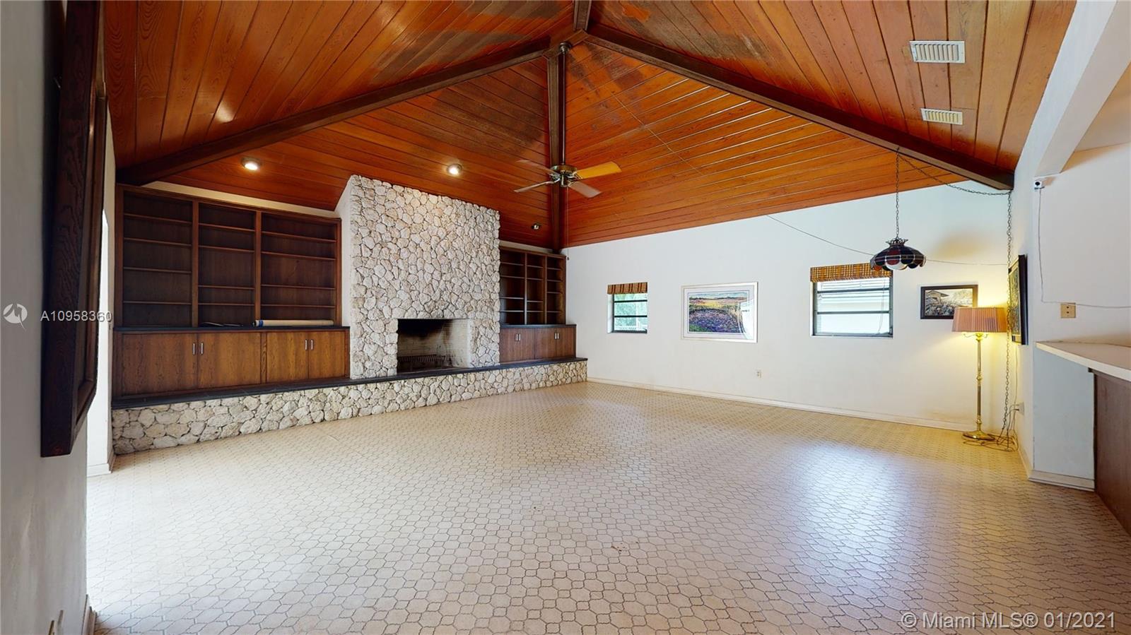 Unique opportunity to own your Coral Gables, Pinecrest-Palmetto school district dream home! This REMODEL-READY 5,283 sqft home w/5 generously-sized bedrooms, 3 ½ baths & oversized 2-car garage sits on ½ acre in prestigious PINE BAY ESTATES CORAL GABLES. This security-patrolled, luxury community is centrally-located at the intersection of tree-lined Red Rd & historic Old Cutler Rd, and is populated with 77 custom-built, multi-million dollar estate homes. The home’s unique features include a vaulted great room w/working fireplace, home office/den w/full bath, expansive covered patio & screened pool, deep walk-in closets. The 800 sqft master suite boasts 2 substantial walk-in closets, dressing room w/2 separate vanities, marble bathroom w/sunken tub overlooking a private walled garden.