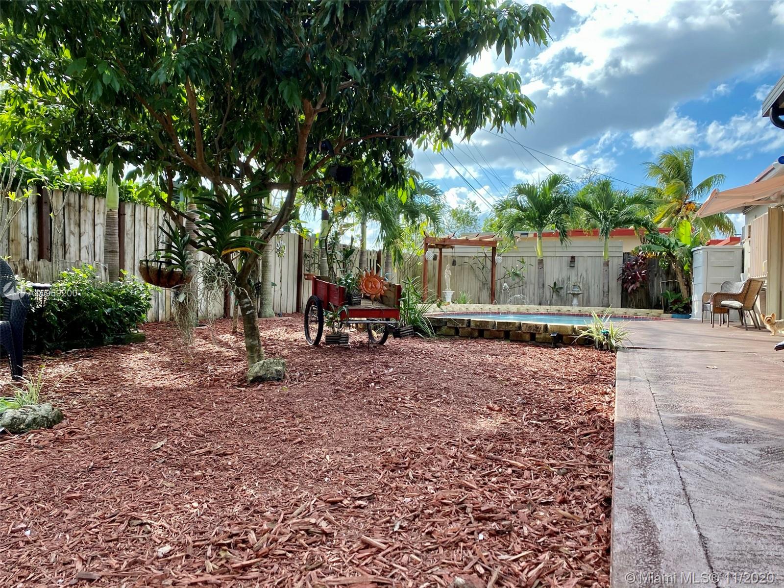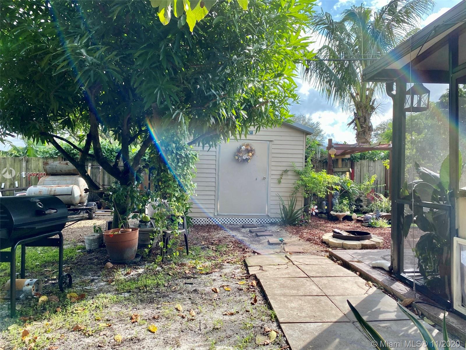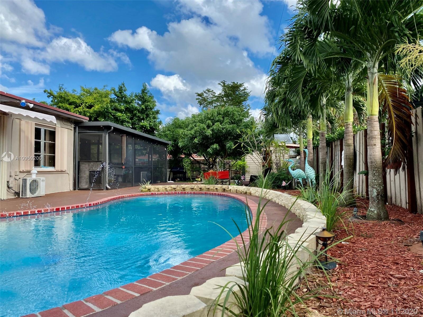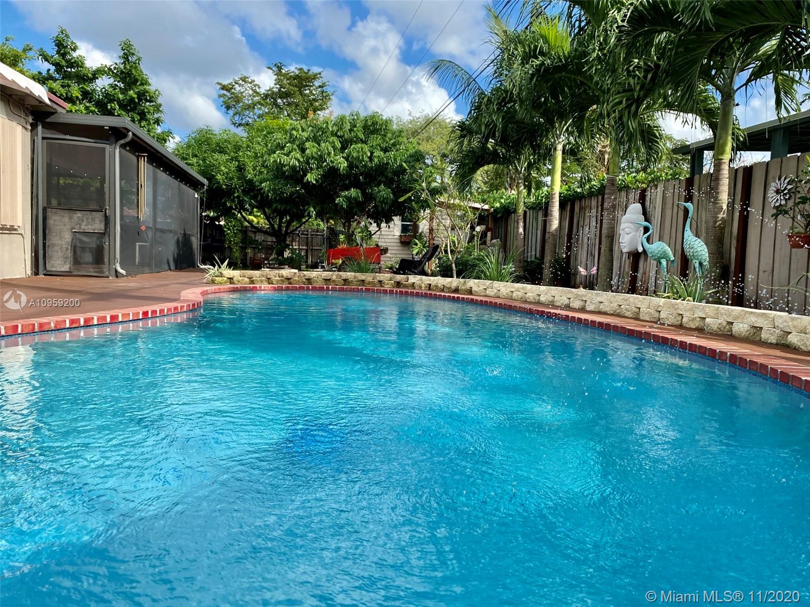 Beautiful pool home on a spacious corner lot with mature tropical trees. This property has four bedroom and three baths which includes an in law quarters with a separate entrance and covered patio. Enjoy Florida living from your spacious screened in patio (bar included), sit and relax by the pond or swim day or night in your private pool. This property features an open concept, granite counters and stainless steel appliances with gas stove, family room, light tile in main areas, metal roof, brand new AC with UV light, accordion shutters, new insulation, tankless water heater, large shed, fenced yard with side entrance, new plumbing under pool and new diamond bright, newer electrical and alarm system. Close to the turnpike, Broward College and quick drive to the beach. No association.