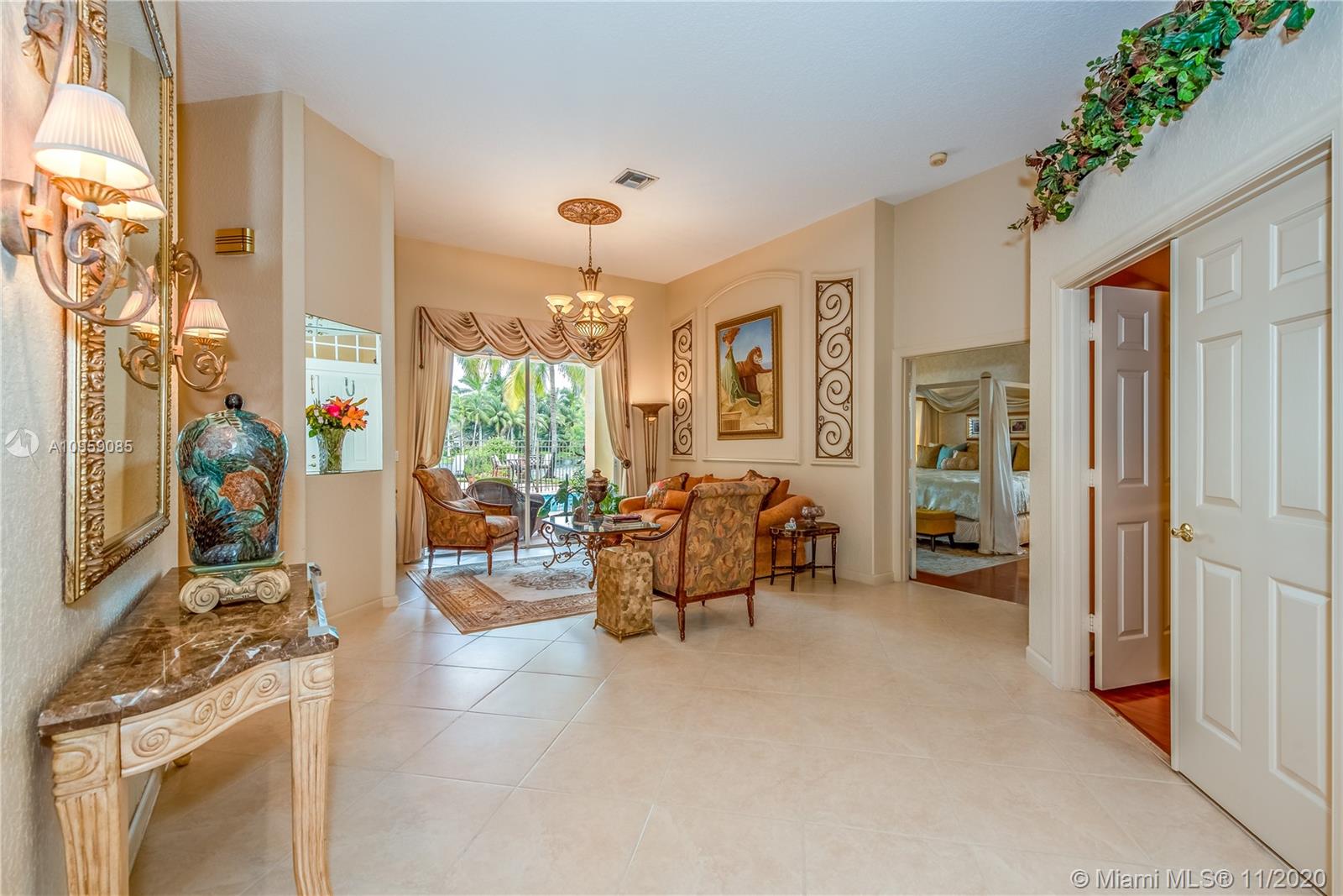 This is one of THE MOST BEAUTIFUL cul de sac lots in all of Davie! Surrounded by water & a park like setting, this outdoor oasis offers stunning peaceful views, large sparkling pool, outdoor kitchen & builder's acre private lot. Step inside to professionally decorated home with over $280,000 in upgrades & features. Huge beautiful kitchen with wood cabinetry, granite & built in fridge. 20x20 porcelain tiles, wet bar, textured ceilings, built-ins & more. Master retreat and upgraded master bath. 5th room is an office with custom cabinetry. HUGE addition complete with recreation & entertaining areas. Interior laundry room AND a mud room off garage. Home Gym. Carlton Ranches is a small boutique gated community with access to biking/walking trails, great schools & highways. This is a HOME RUN!