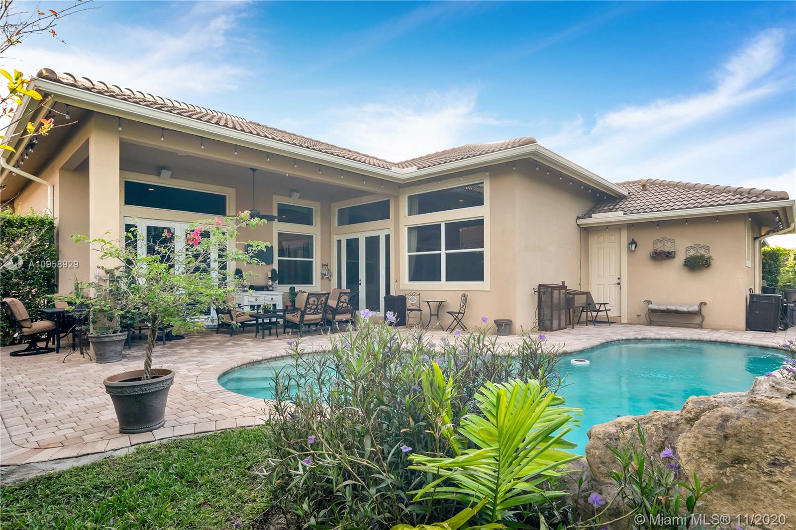 MAGNIFICENT DESIRABLE 4 BEDROOM 3 BATH POOL HOME LOCATED IN PINE ISLAND ESTATES. NEWER HOME BUILT IN 2010, RARELY AVAILABLE ONE STORY FLOOR PLAN HAS IT ALL, AS YOU WALK INTO THE HOME YOU WILL LOVE THE OPEN FLOOR PLAN WITH TRAVERTINE TILES LEADING INTO THE LARGE LIVING ROOM & DINING ROOM, INTERIOR FEATURES INCLUDE UPGRADED KITCHEN WITH 42 INCH KITCHEN CABINETS, GRANITE COUNTERTOPS, STAINLESS STEEL APPLIANCES. LARGE OPEN TRIPLE SPLIT FLOOR PLAN WITH ENGINEERED WOOD FLOORING IN BEDROOMS. SPACIOUS MASTER SUITE WITH 2 WALK IN CLOSETS, MASTER BATH WITH DOUBLE SINKS, SHOWER, JACUZZI TUB.. ENJOY LARGE OUTDOOR SPACE IN PRIVATE BACKYARD WITH A BEAUTIFUL POOL AND COVERED PATIO AREA, GREAT FOR FAMILY AND FRIENDS GATHERINGS! MUST SEE IT TO APPRECIATE IT.