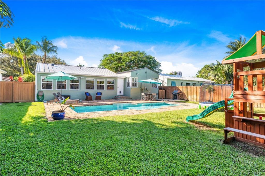 A wonderful Victoria Park pool home with spacious yard. Fresh paint, NEW roof, impact windows & doors, lovely landscaping, fully fenced & private. Upon entry this 3bed/2bath residence presents a light & friendly style with comfortable sight lines to pool & yard from nearly every room. Fully functional fireplace & original touches that lend to the warm look & feel. Plus ample flex space perfect for home office or den or gym. The kitchen is open and modern with newer stainless appliances, glass top stove, storage and counter space. Baths are updated with modern appeal. Master ensuite has pleasant pool and yard views situated in a split floorplan. The home is fortunately located a short distance to beaches, shopping, grocery stores, dining, Las Olas Blvd, and major hywy/airport/port/train.