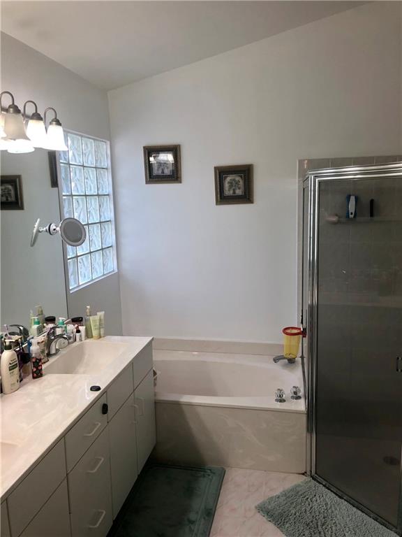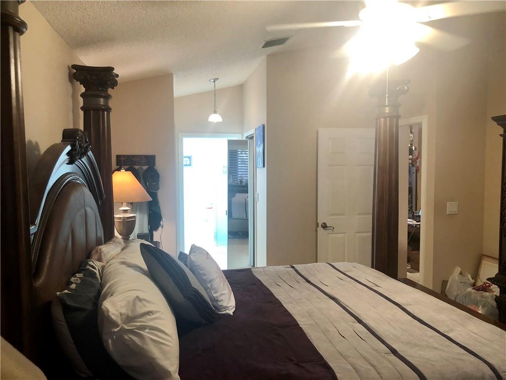 Welcome home! Enjoy this secluded section of palm air featuring a neighborhood of 28 homes complete with its very own community pool. Within walking distance of the golf course, this single level, split floor plan home has so many great features. You will enjoy the expansive open living, kitchen and dining space with vaulted ceilings and plenty of natural light! The home features three bedrooms, two bathrooms and an enclosed patio space. Master suite is spacious, complete with dual closets, double vanity and jet tub. Plenty of storage with a large laundry room, and oversized two car garage. Act fast before this easy living home is gone!