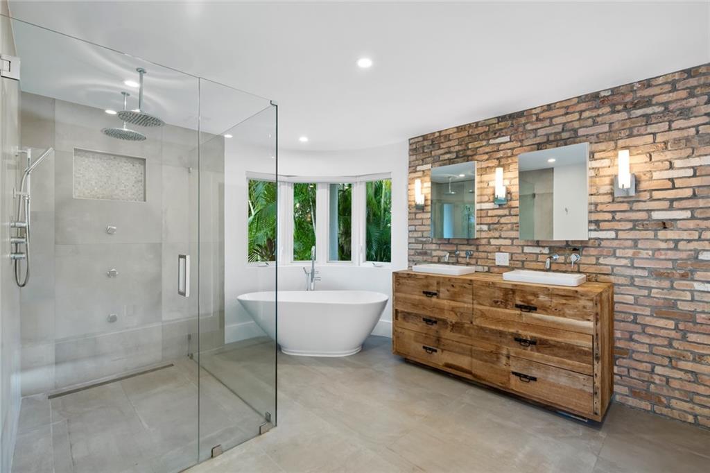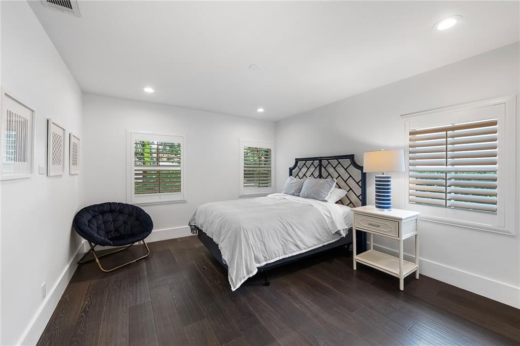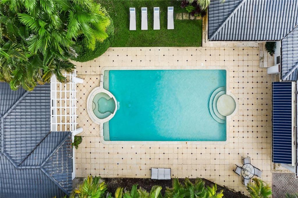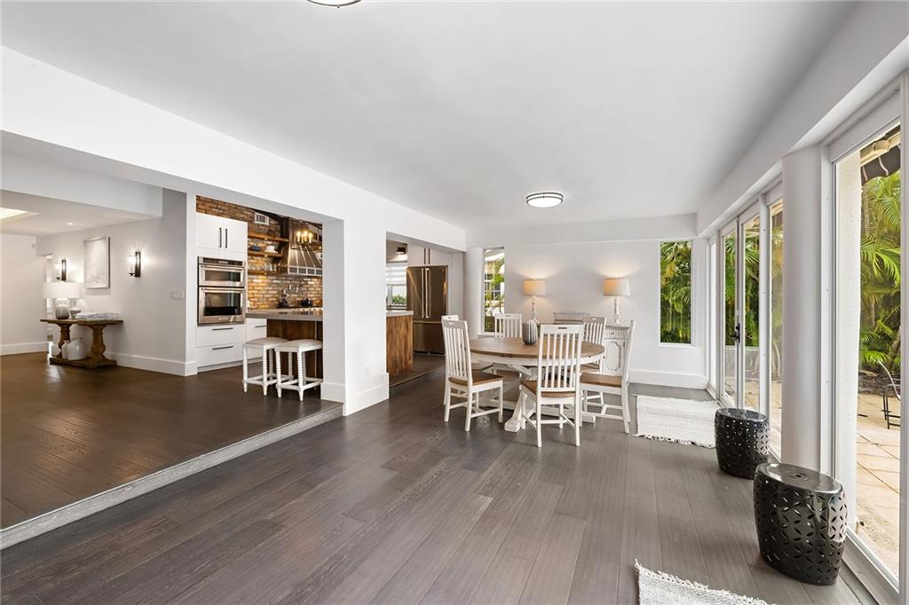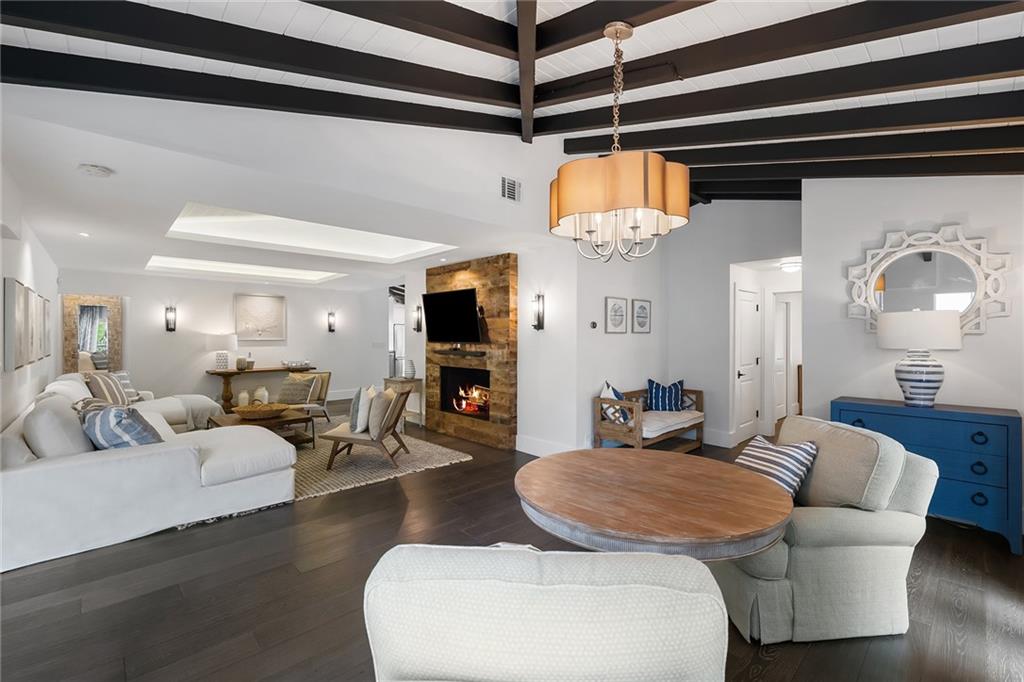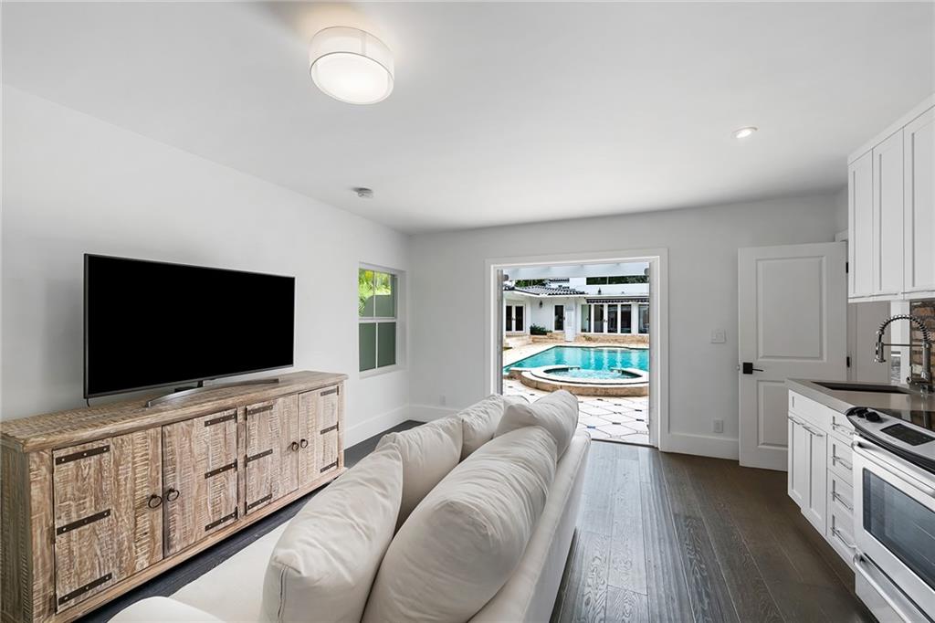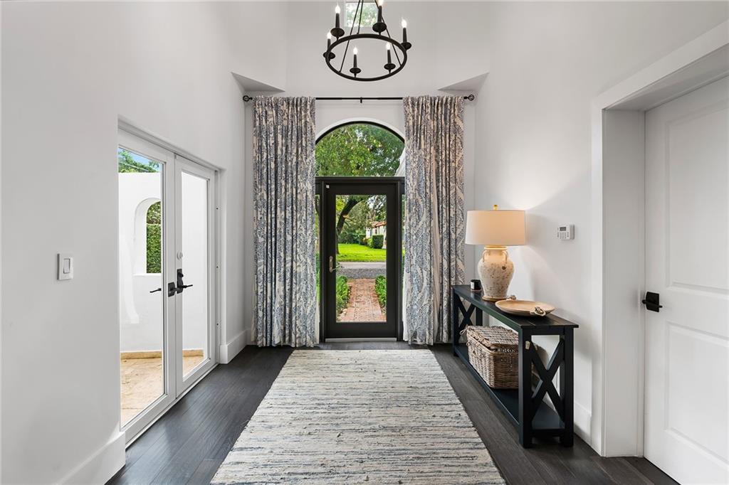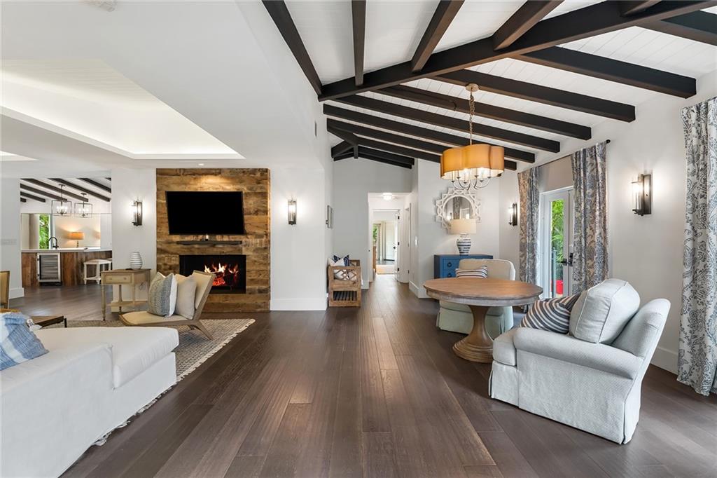 Welcome home to beautifully renovated and professionally designed transitional modern, in the heart of the exclusive Coral Gables community. Enjoy an open warm inviting floor plan flooded by natural light from multiple french doors defining the exterior walls. Elevated ceiling heights in the entry present a grand entrance that pulls your eyes into the main living area highlighted with fireplace, raised ceilings, wood beam accents, wall sconces, elegant window treatments, and chic furniture accents. The kitchen and dining area of the home offer top of the line appliances (Viking) and gas cooking options. With 4 bedrooms + den in the main house and a full functioning guest house ( kitchen, full bath, and separate bedroom) this house is incredible. Lush, tropical, private, and modern.