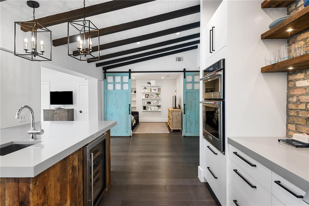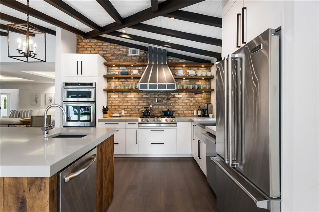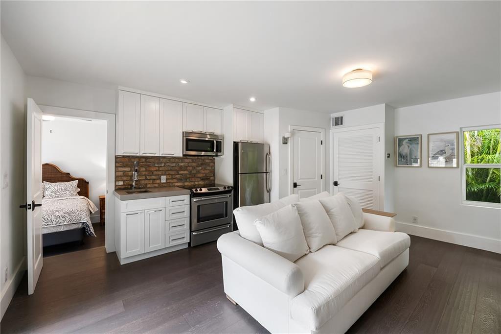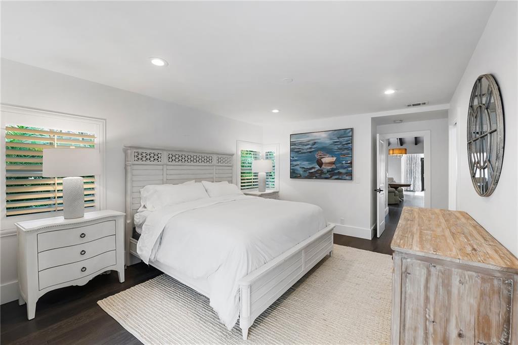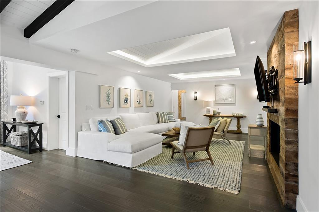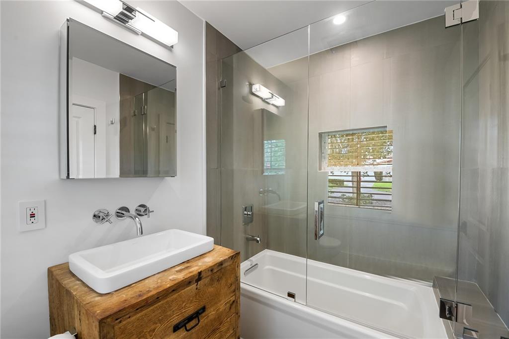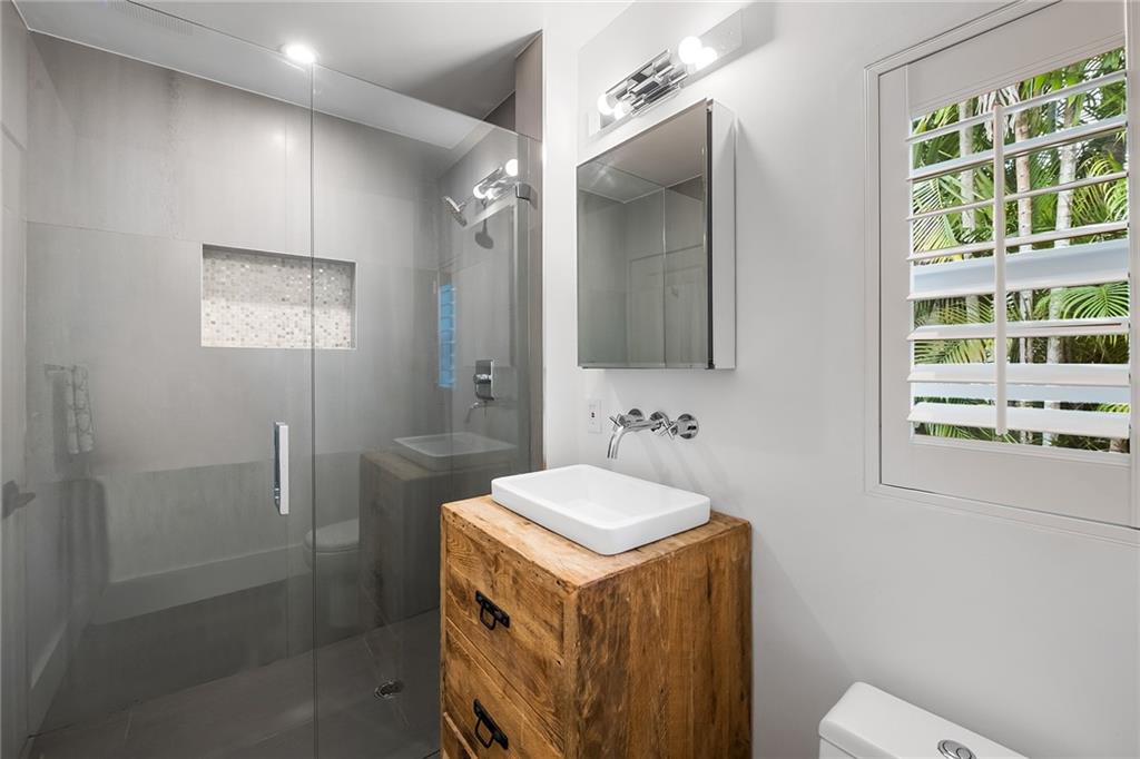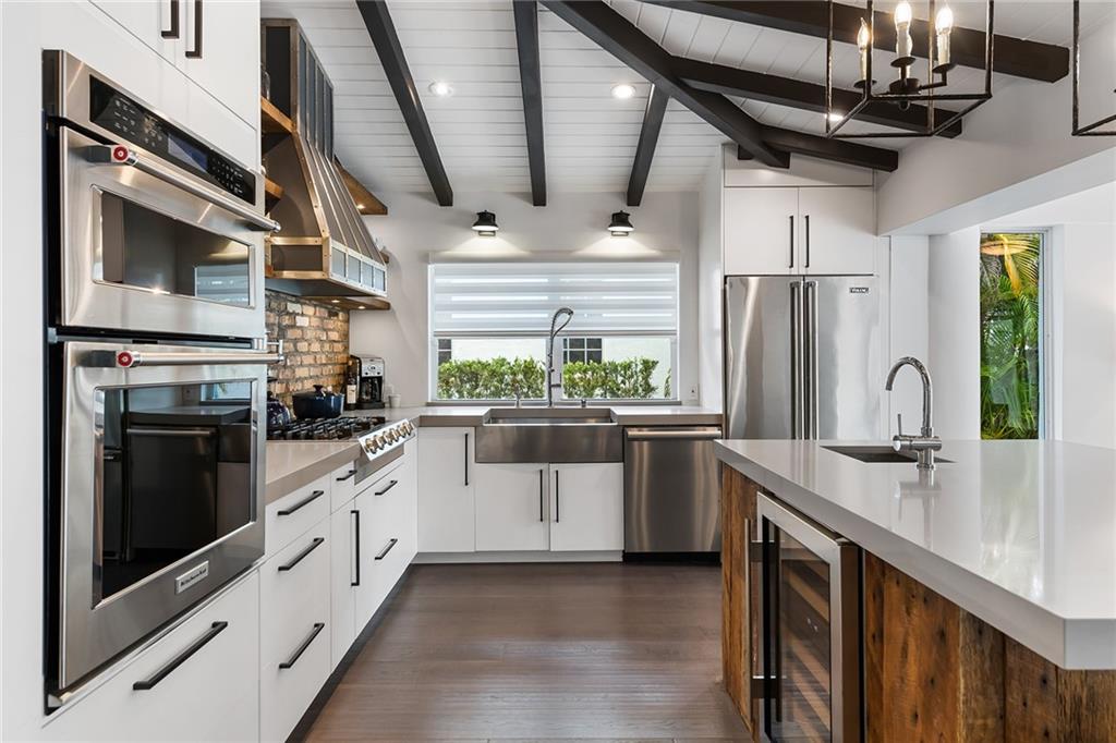 Welcome home to beautifully renovated and professionally designed transitional modern, in the heart of the exclusive Coral Gables community. Enjoy an open warm inviting floor plan flooded by natural light from multiple french doors defining the exterior walls. Elevated ceiling heights in the entry present a grand entrance that pulls your eyes into the main living area highlighted with fireplace, raised ceilings, wood beam accents, wall sconces, elegant window treatments, and chic furniture accents. The kitchen and dining area of the home offer top of the line appliances (Viking) and gas cooking options. With 4 bedrooms + den in the main house and a full functioning guest house ( kitchen, full bath, and separate bedroom) this house is incredible. Lush, tropical, private, and modern.