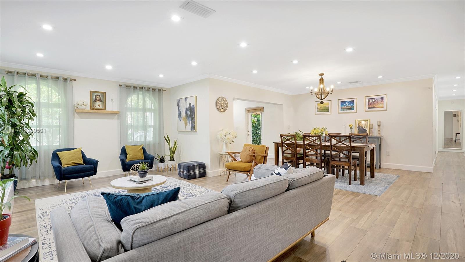 This spacious, single-family home in Coral Gables features modern amenities and architectural character in a fantastic location. This home features over 1700 SF of living space - 4 spacious bedrooms & 2 baths, open layout, living room, dining, updated kitchen featuring all stainless steel appliances and impact windows. Step outside and enjoy your own oasis retreat. Covered pergola with ceiling fan to enjoy a beautiful dinner after spending the day in your 12 x 30 heated, saltwater pool with access from the pool to the second bathroom and master. Perfect location, steps away from the Country Club Prado that is perfect for strolls, running, biking and features the historic Coral Gables entrance park. Minutes away from Miami International Airport, A Schools and Downtown Coral Gables.