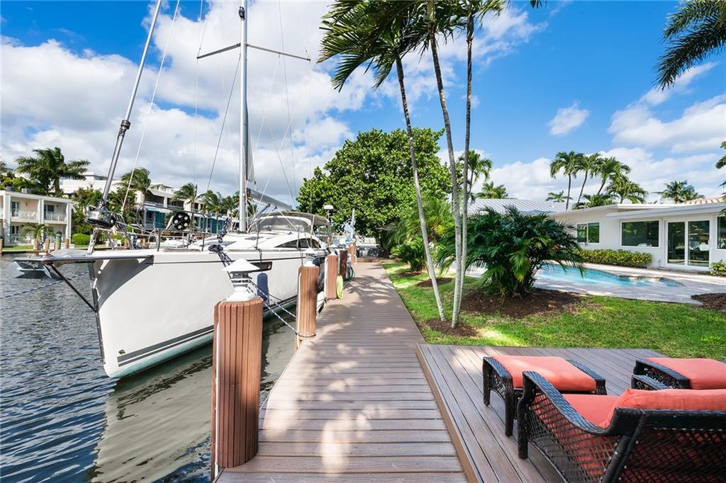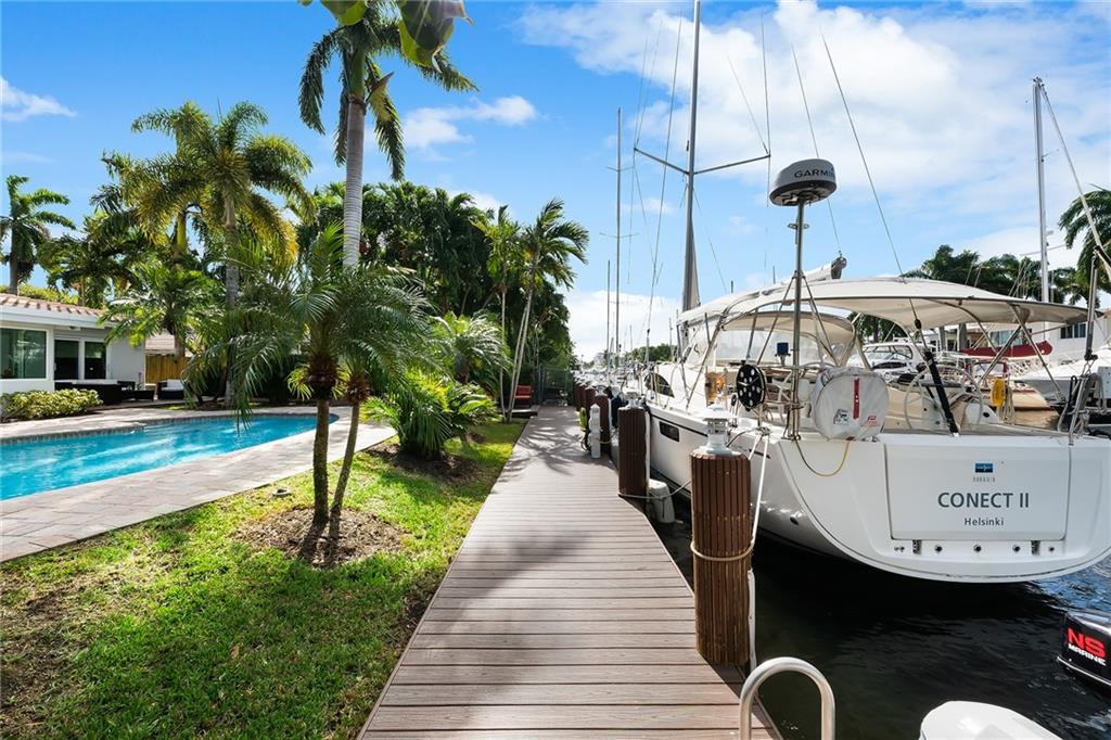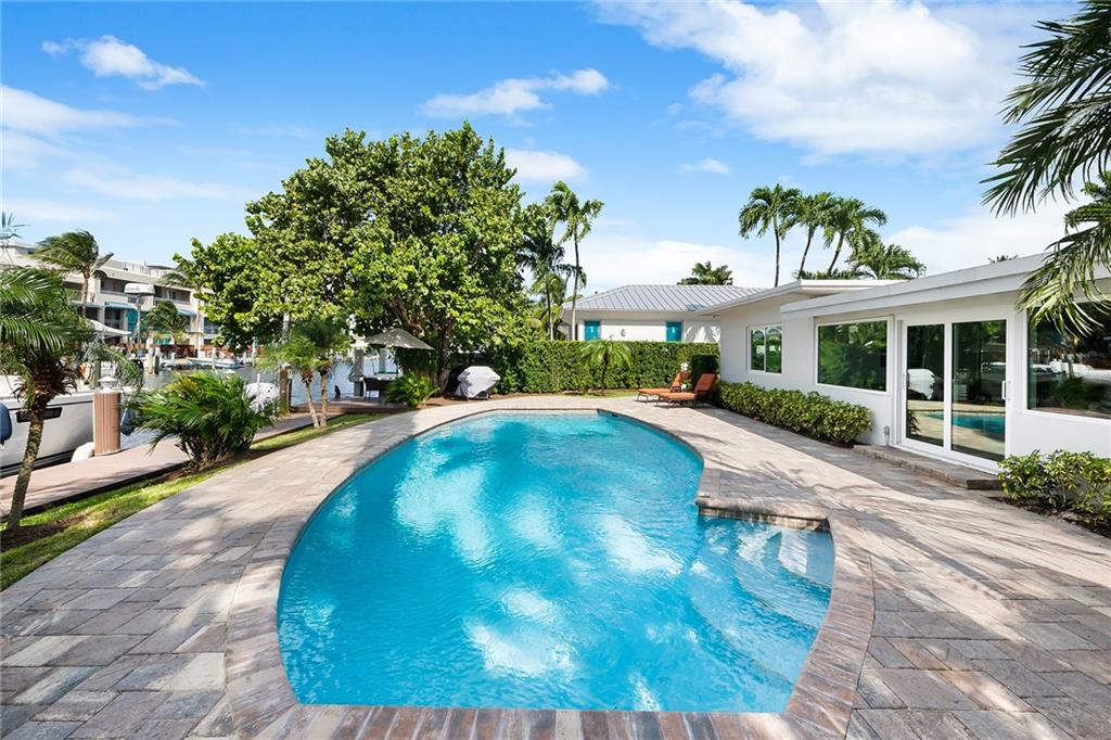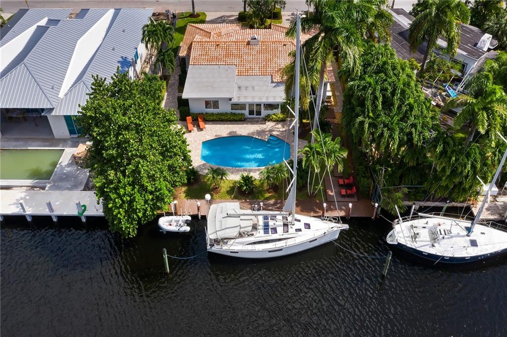 Amazing opportunity on Fiesta Way! 85'of water frontage that will accommodate up to a 65' yacht! Charming 3 bedroom and 3 bath ranch style home that offers an amazing pool and patio area! Impact windows and doors 2013, Roof and seawall replaced in 2010, New dock and deck in 2013, New dock lift in 2019. New AC in 2015 plus many more upgrades! All bathrooms have been updated as well. Fabulous natural light throughout. Circular paved driveway. Kitchen offers stainless steel appliances plus a gas range! Lush tropical landscaping! Underground utilities on street. Extremely well-maintained home and perfect for avid boat lovers! Close proximity to the beaches, dining, and shopping on Las Olas.