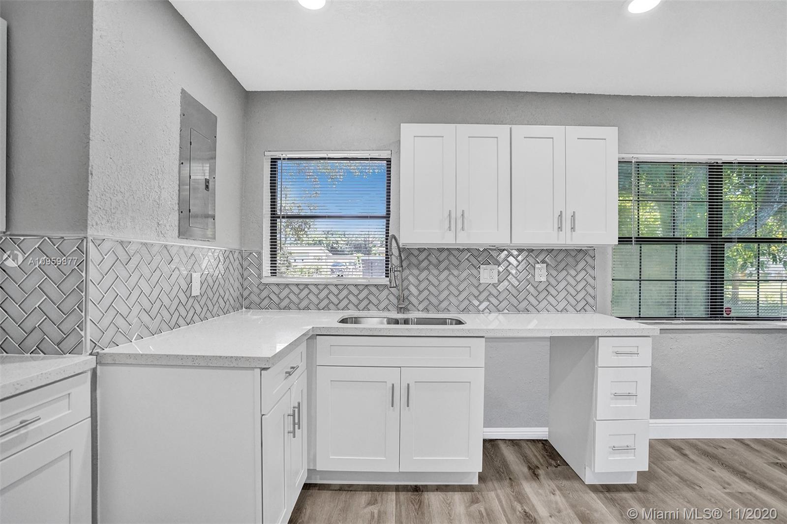 BEAUTIFUL FULLY REMODELED 3/2 HOME FEATURES A NEW ROOF & FASCIA BOARDS. NEW WOOD KITCHEN CABINETS, QUARTZ COUNTER TOPS & WINDOW SILLS & LED LIGHTING. BREATHTAKING CUSTOM MOSAIC KITCHEN BACKSPLASH. NEW VINYL WATERPROOF FLOORING THROUGHOUT THE ENTIRE HOME. NEW WINDOW TREATMENTS, BASEBOARDS, DOORS, OUTLETS,SWITHCES & SMOKE DETECTORS. UPGRADED BATHROOMS. NEW REMOTE CONTROLLED CEILING FANS IN ALL BEDROOMS & LIVING AREAS. UPGRADED ELECTRICAL PANEL & SPRINKLER SYSTEM. NEW LANDSCAPING. SELLER IS ALSO OFFERING A $2,000 APPLIANCE CREDIT AT CLOSING. HUGE OVERSIZED LOT. SEE BROKER REMARKS. THIS HOME WILL NOT LAST!!