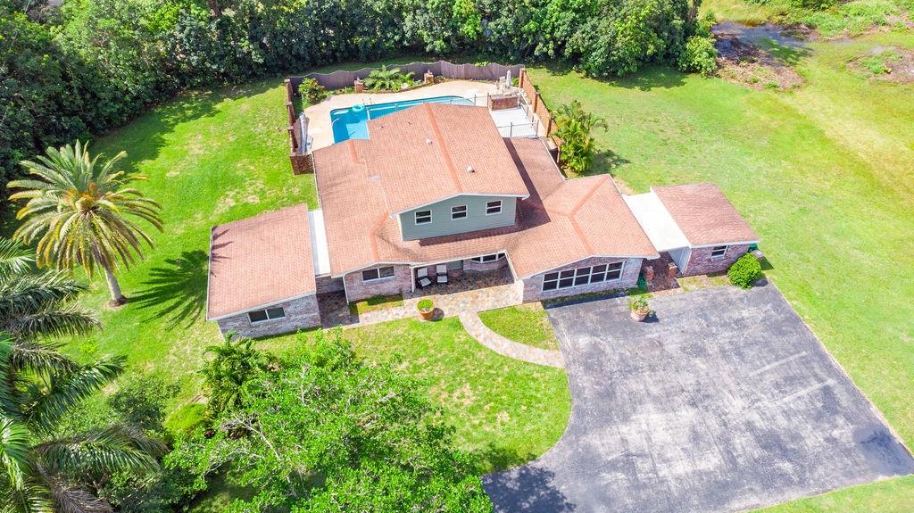 MAKE AN OFFER. PRICED TO SELL. Move into this Private country home on a 1.3 acre corner lot. If you prefer character and charm than this home is for you. NO HOA. Impact doors & windows throughout. Step inside and be amazed at how spacious this residence is. Extra large family room. 3 bedrooms including over-sized in-law suite with a private entrance. Den can be converted to 4th bedroom. 3.5 bathrooms. Master suite with fireplace opens to a large balcony overlooking 8ft saltwater heated pool, your own personal Shangri-La. Stainless appliances. New Roof, AC, water heater, electric panel, and septic tank. Covered screened patio with wood ceiling and built in BBQ. Bring your horses, RV, and boat. Taxes reflect Y-Green assessment. Contact listing agent for showings.