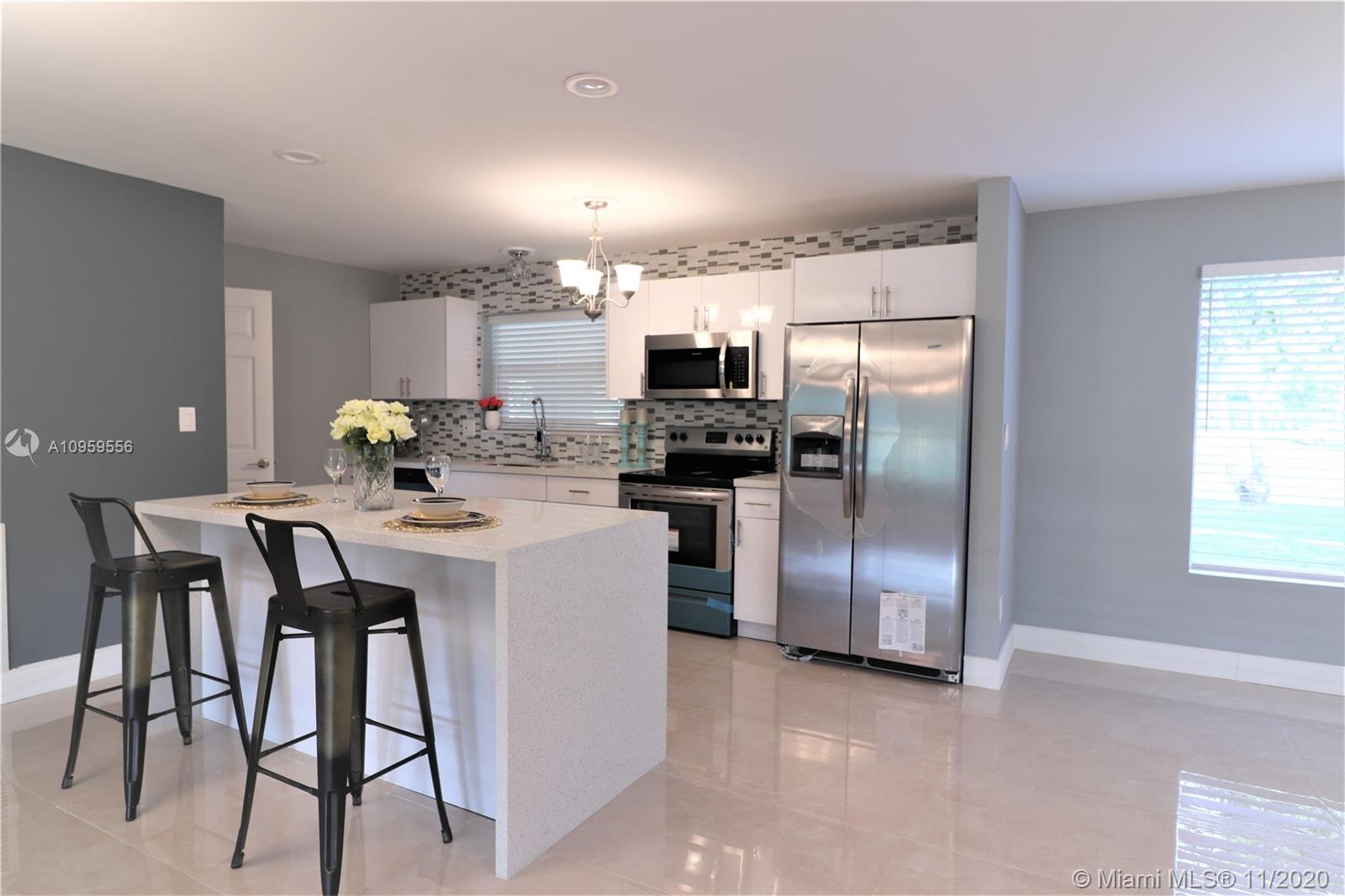 Luminous elegant single family home with 3 Bedrooms,2 Full Bath, completely remodeled from head to toe in a beautiful neighborhood.New Roof, New A/C on permit.New tile Flooring through home and Wood laminate in bedrooms.New waterline from meter through the house.New Sewer connection. New hard wood vanities w/Glass Doors in bathrooms.All doors are New.New quartz counter top on wood cabinets with New SS Appliances. New full size Washer and Dryer. New plumbing and Electrical Fixtures. New irrigation system with New piping,timer and heads. New exterior and interior electric Panel, new electric wiring almost entire of the house. New Smoke detectors.Freshly painted interior and exterior building. Centrally located in heart of Fort Lauderdale and close to highway and everything .No HOA,Must See.