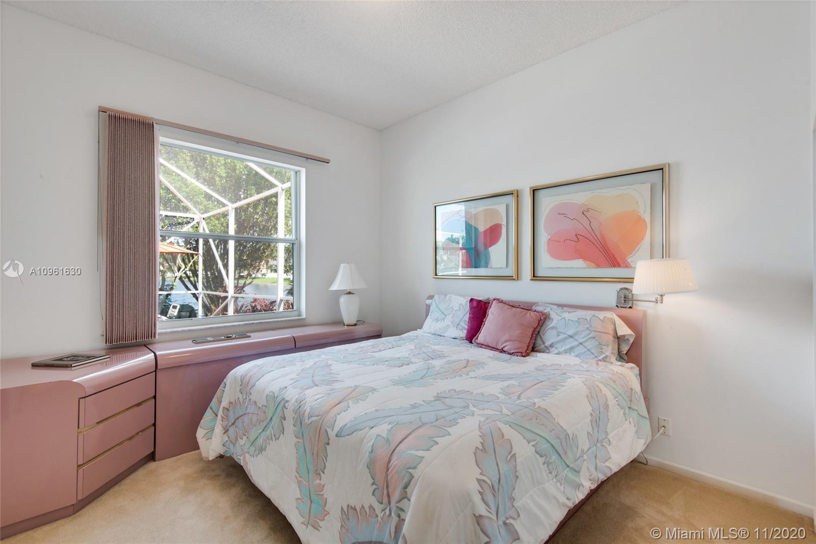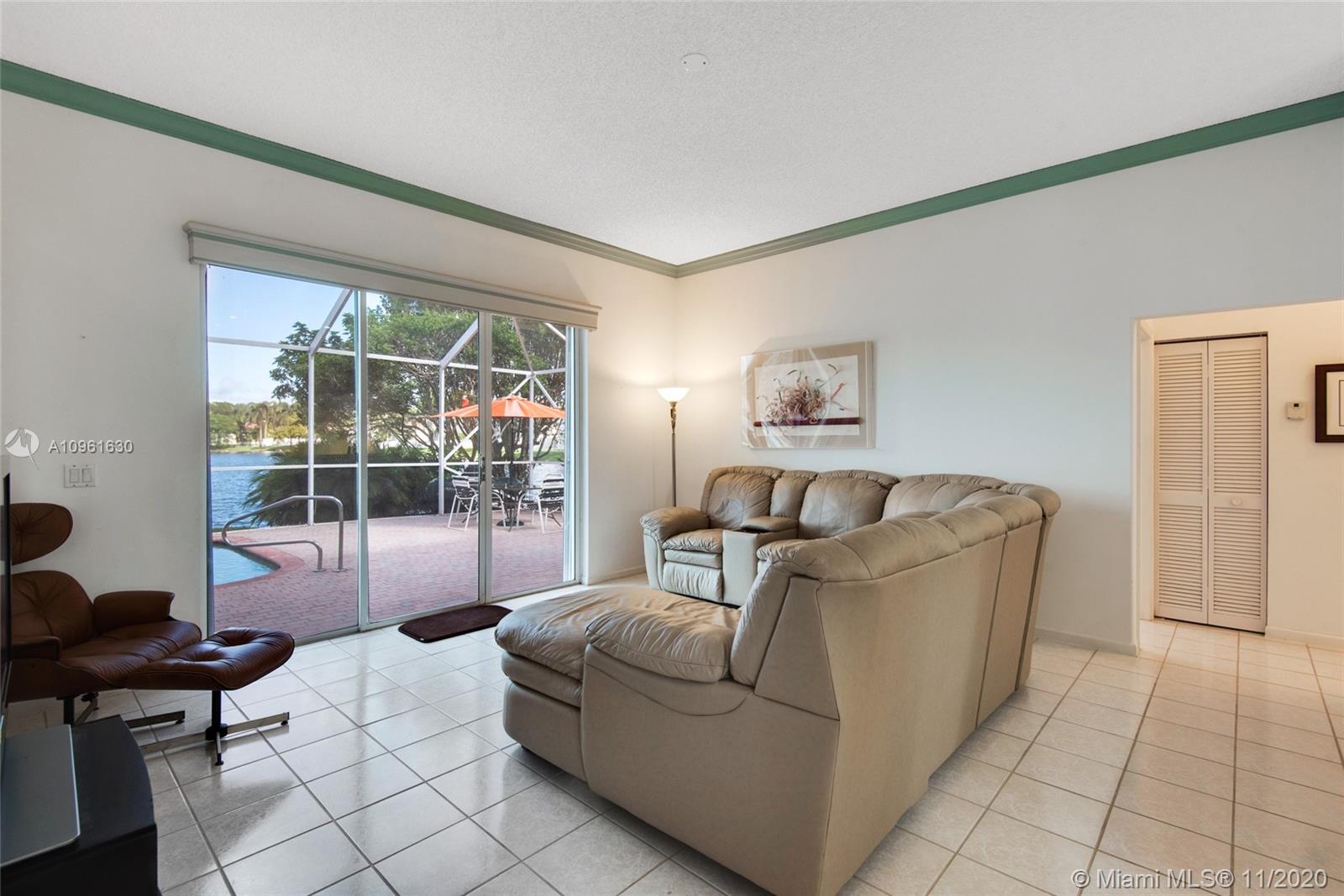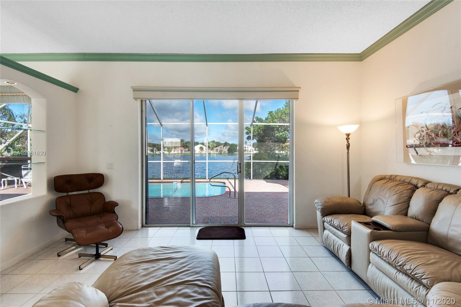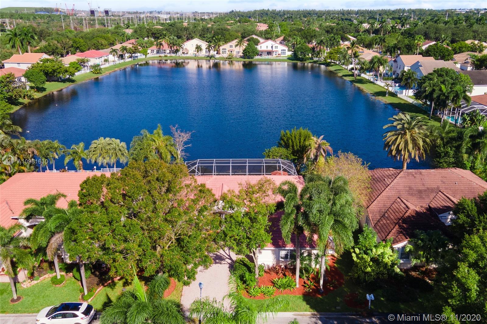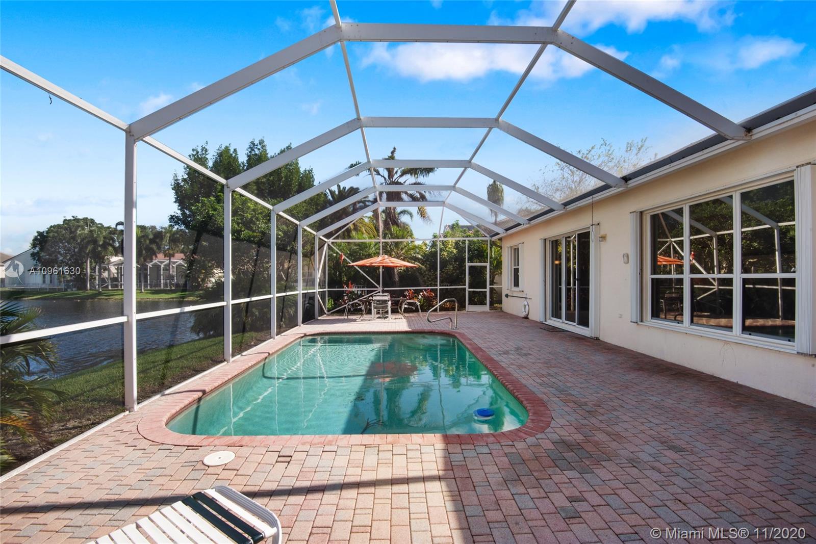 Very nice lakefront home in the community of Oakridge. This is an immaculate 3 bedroom/2 bath split floor plan pool home situated on an oversized lakefront lot. White tile throughout and carpet in the bedrooms. This home features a paved driveway, a propane gas generator and accordion hurricane shutters on all the windows. The pool area is screened in with a large paved deck area, great for gatherings and entertaining. The community amenities include playground, full court basketball and tennis courts along with a 24 hour staffed guard house.