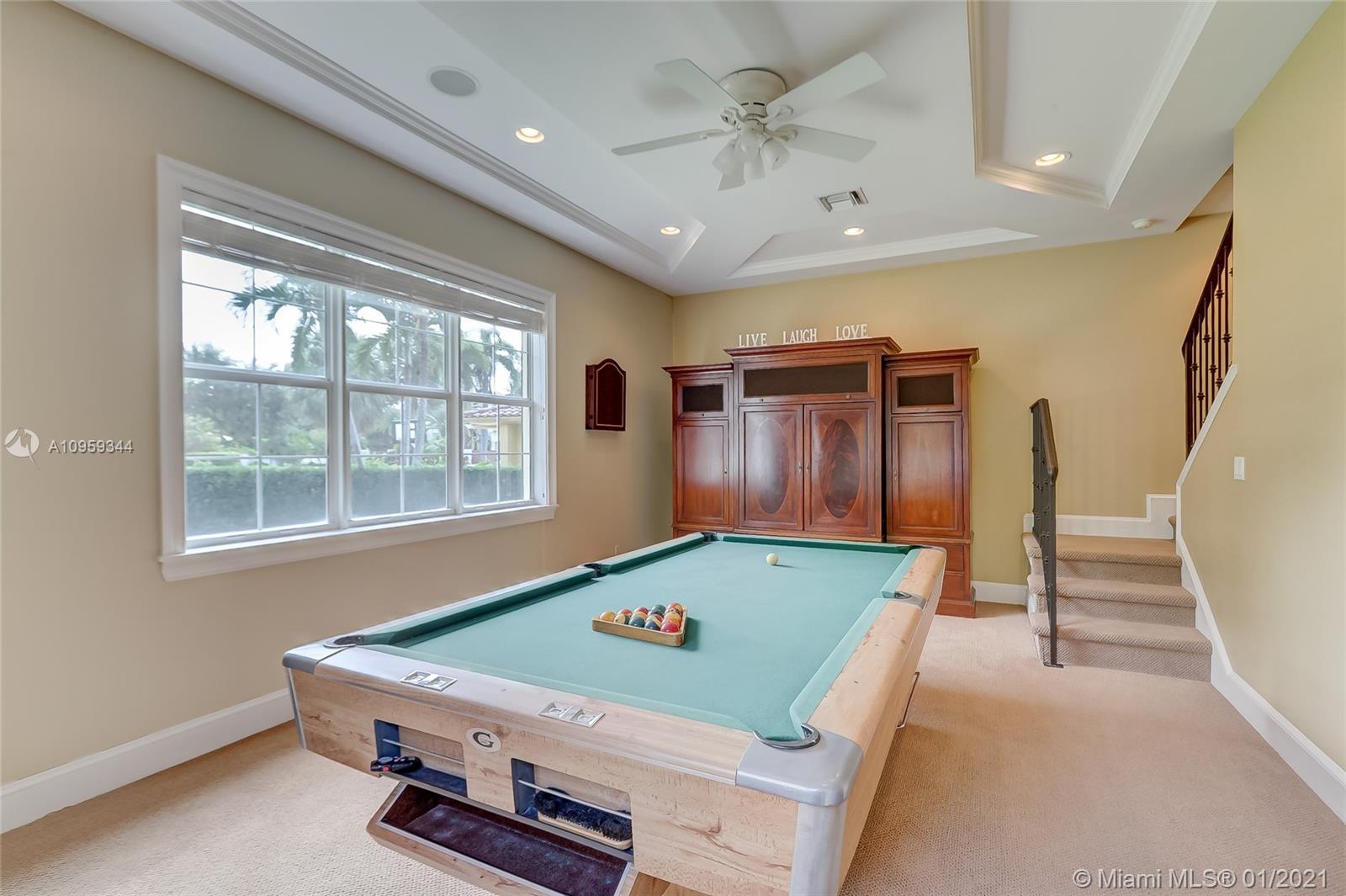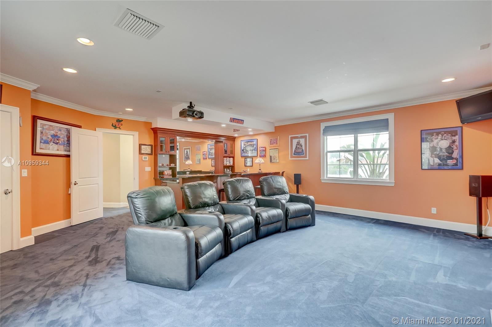 Highly desirable Sunrise Intracoastal gated community, top rated Bayview School District. Walk to beach, Galleria Mall, entertainment & restaurants. This versatile large residence sits on a corner lot, built in 2007, impact glass, great for entertaining w/huge covered marble terrace with summer kitchen: wet bar, grill, storage, fridge. Generator. 1st level: Tall ceiling foyer entry, large open kitchen with walk in pantry, family room, 2 half baths, 1 bedroom with ensuite bath, room with 3 individual office stations (could be 5th Bedroom), game room with pool table, private formal dining room, piano room. 2nd level: Master Suite w/oversize sitting area/living room (could be split into 6th bedroom), media room/entertainment complete with full bar, icemaker, dishwasher and refrigerator.