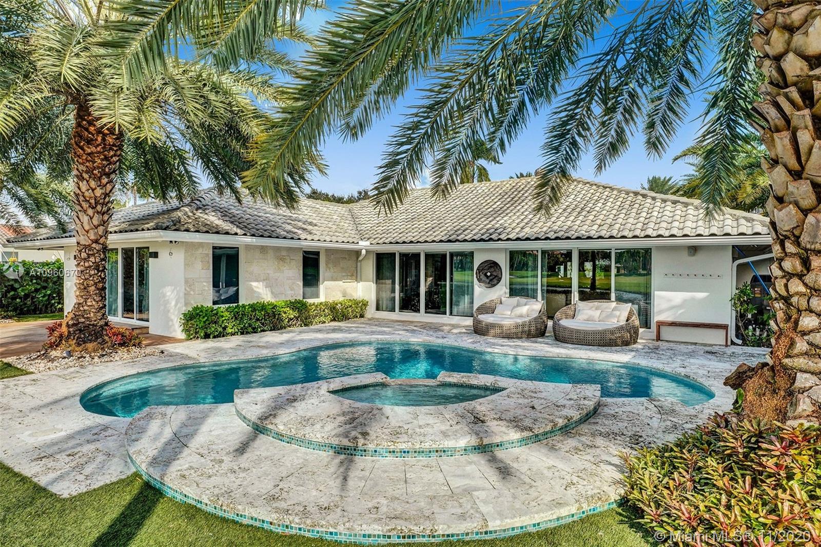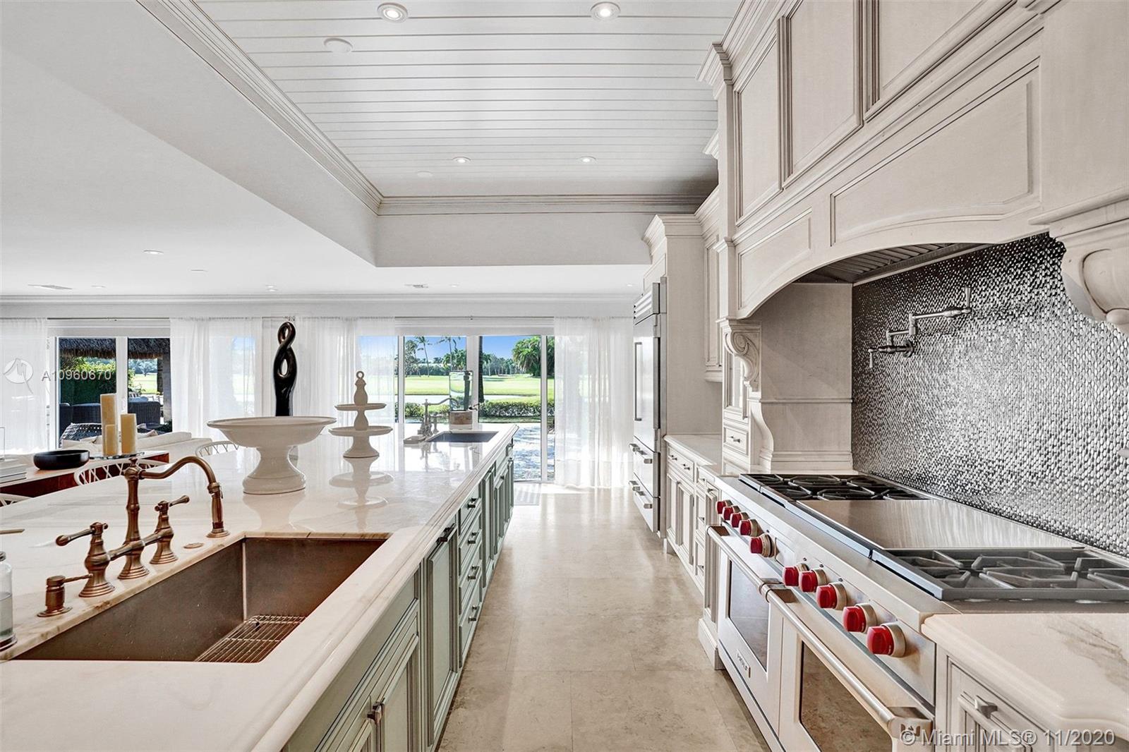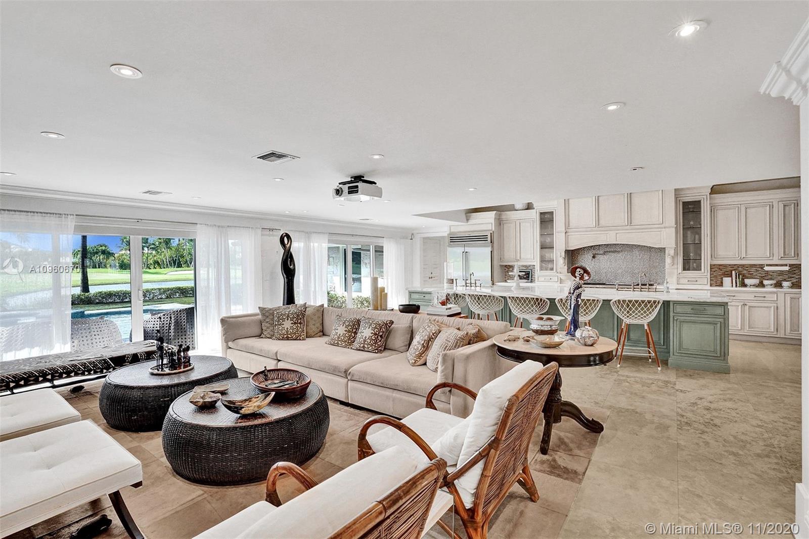 Beautiful remodeled home to the highest construction standards. Privately gated with elegant interior finishes, this single story, 5 bedroom, 4.5 bathroom property is the perfect family home. It has a Tiki with an outdoor kitchen plus a cabana bathroom perfect for outdoor gatherings. The minute you walk in the home the views of the new and exclusive SLS golf resort designed by Greg Norman will capture your eye. The living room, kitchen and master bedroom all have views to the pool and golf course. The huge gourmet kitchen with custom cabinetry includes 4 Wolf ovens, gas range , 2 dishwashers, subzero fridge and freezer. Hurricane impact windows thru-out. Located 5 minutes from the beach, 10 minutes from Aventura, 15 minutes from Bal Harbour and Fll, make this home very centric.