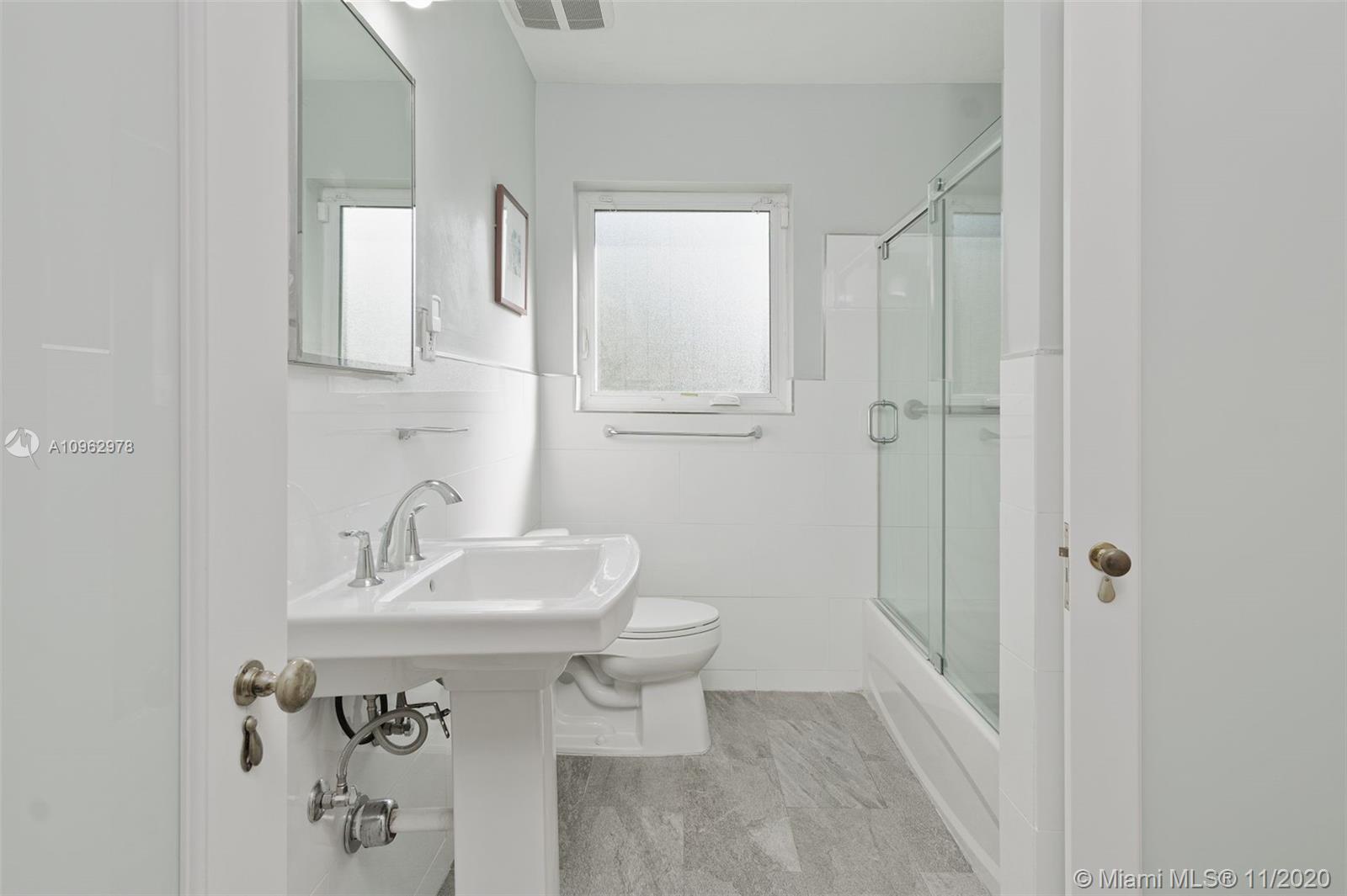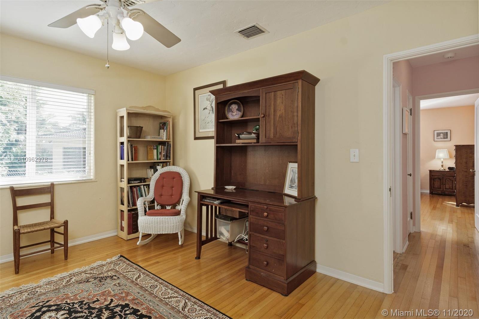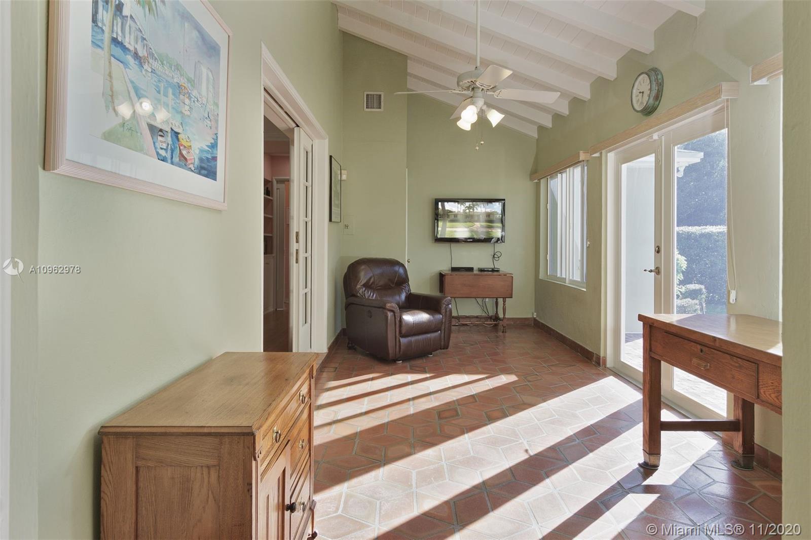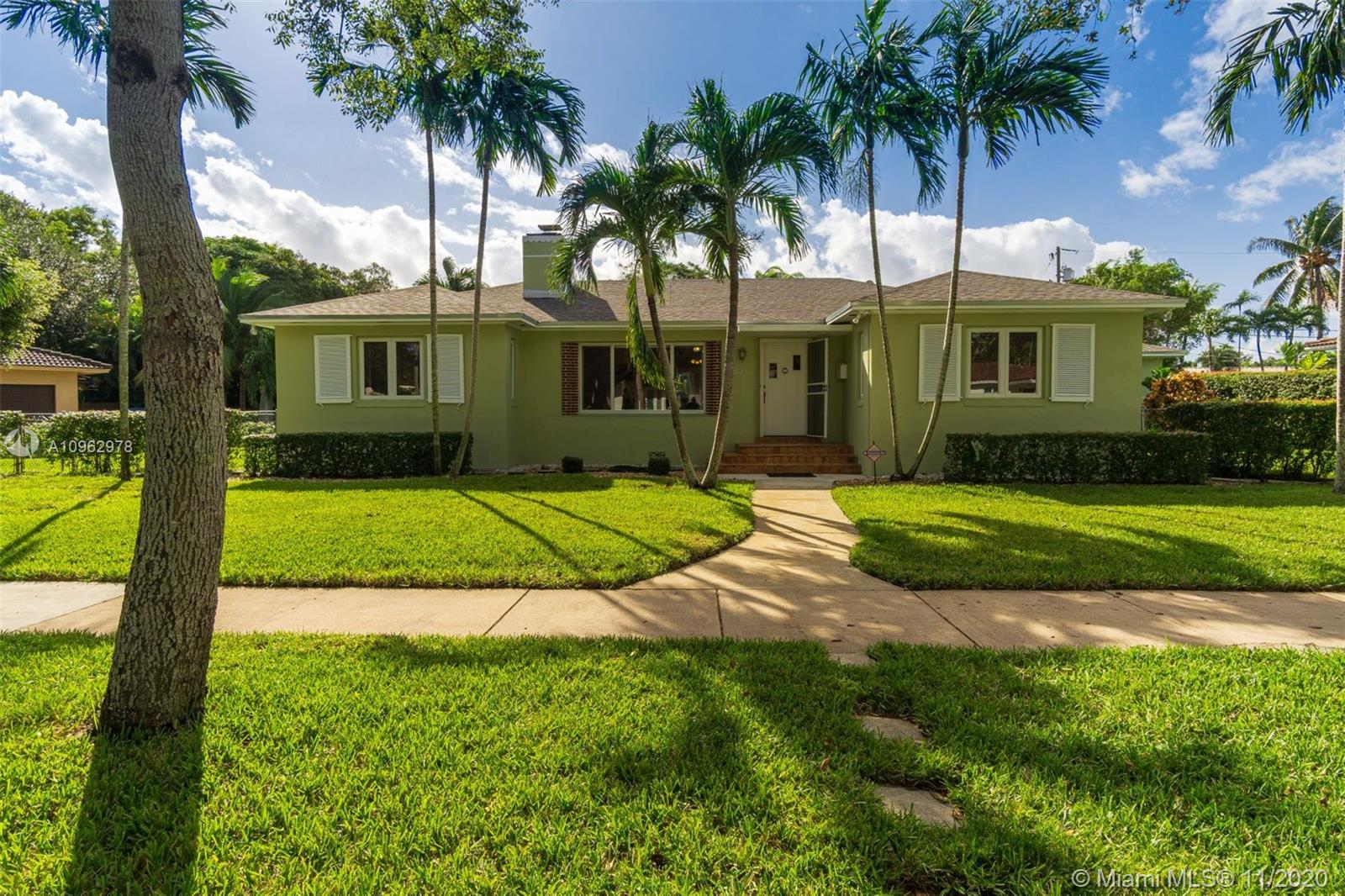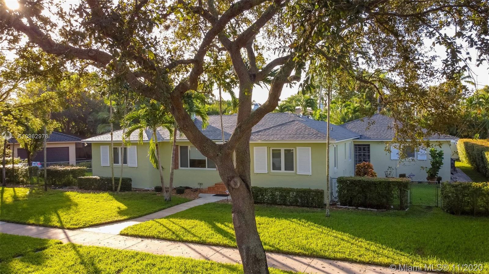 4 bedrooms and 3 full baths in Miami Shores. Big fenced yard with room for a pool. Attached 2 car garage and attached one car carport. 3 bedrooms and 2 baths in main house, 1 bedroom and 1 bath in attached guest cottage. New roof, hurricane impact windows and doors, alarm system. Original hardwood floors throughout plus original quarry tile floors in the Florida room. Formal living room has wood burning fireplace, dining room is open to the updated kitchen. Great location, walk to the community center, tot lot, golf course, swimming pool and country club. Move in condition.