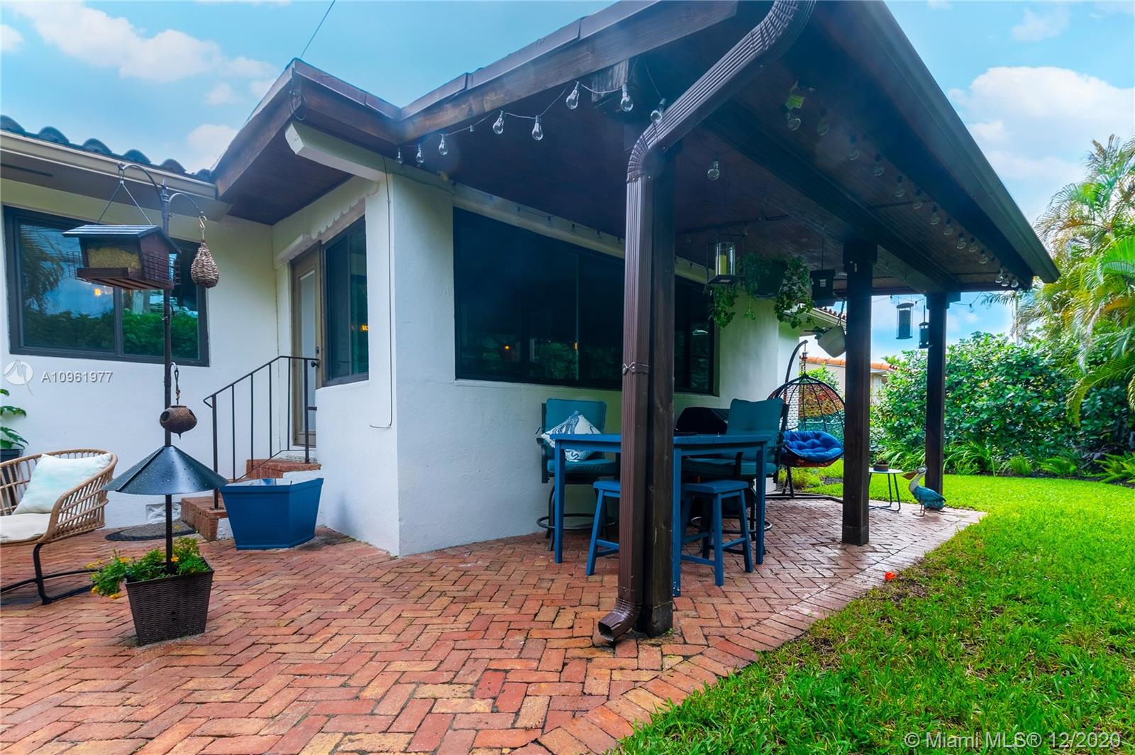 Captivating, single-family home in The Gables features modern amenities and a backyard oasis in a fantastic location. 2bed/2bath home in North Gables, spacious bedrooms & flexible living area with office/den. Updated kitchen with granite counters, stainless steel appliances & new dishwasher. This charming home has been fully redone with impact windows, laminate floors, new A/C and water heater, refinished ceilings with crown molding, new paint and LOTS more! Newly designed landscaping features a lush, tropical, private backyard perfect for a small pool or play area. Chicago bricks line the driveway & patio. 1 car garage with lots of extra space. Conveniently located near the airport, hospitals and A+ schools. Walk to Granada Golf Course and Miracle Mile. Don't let this one get away!
