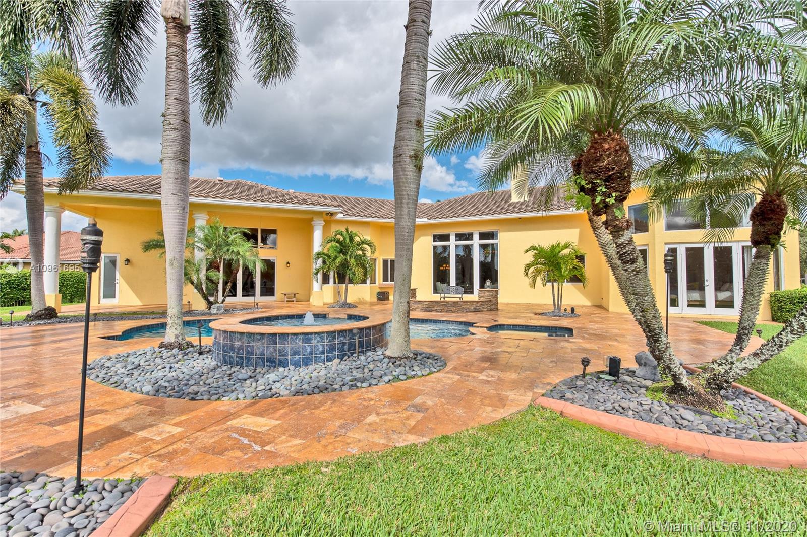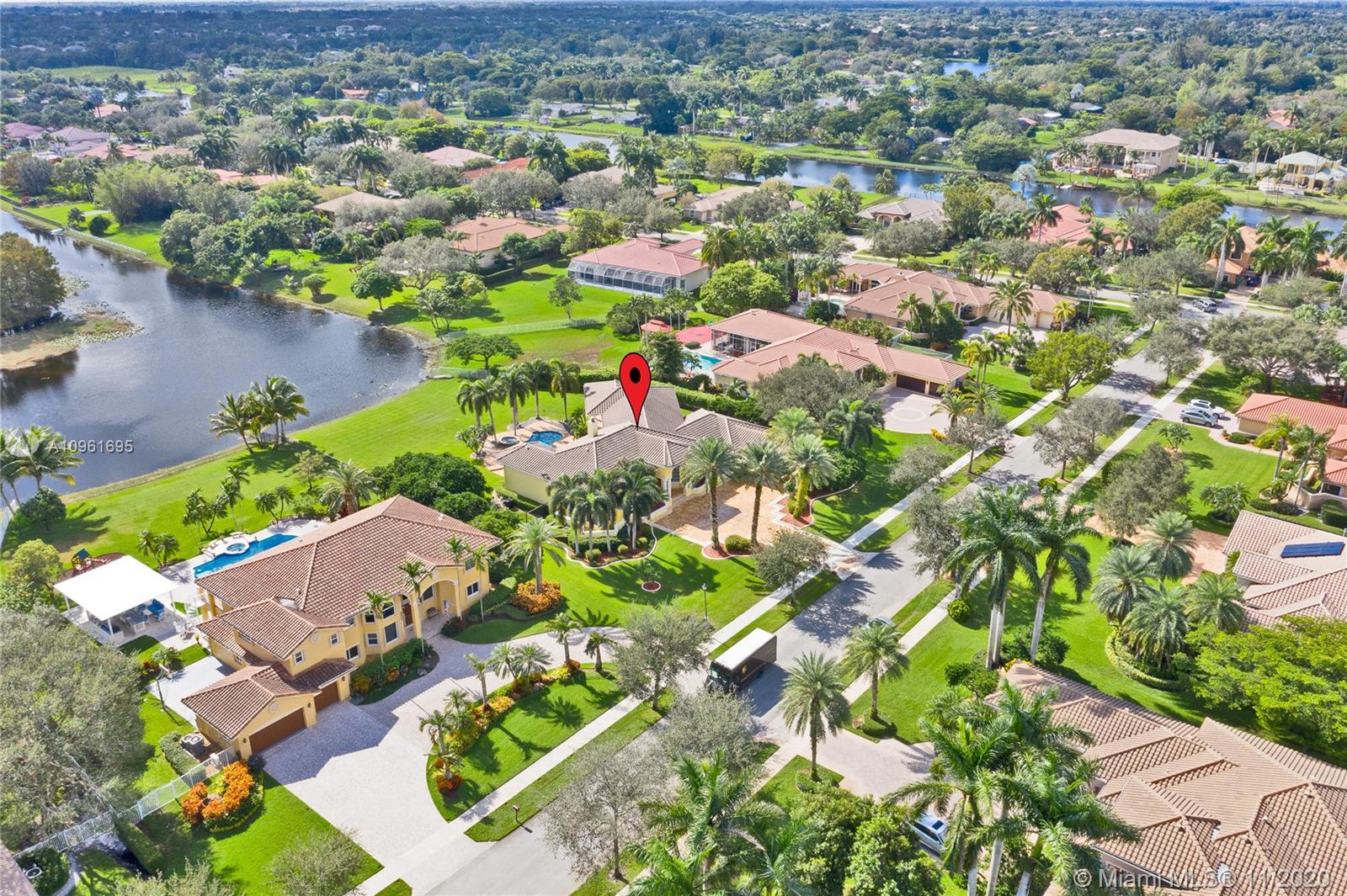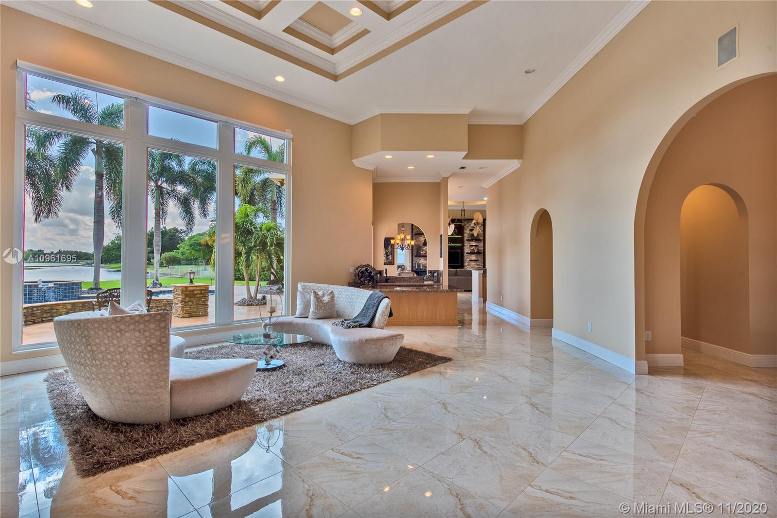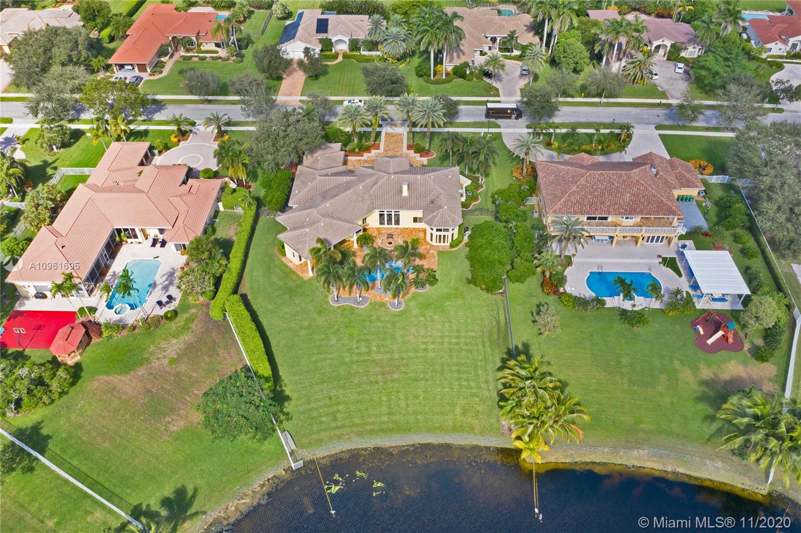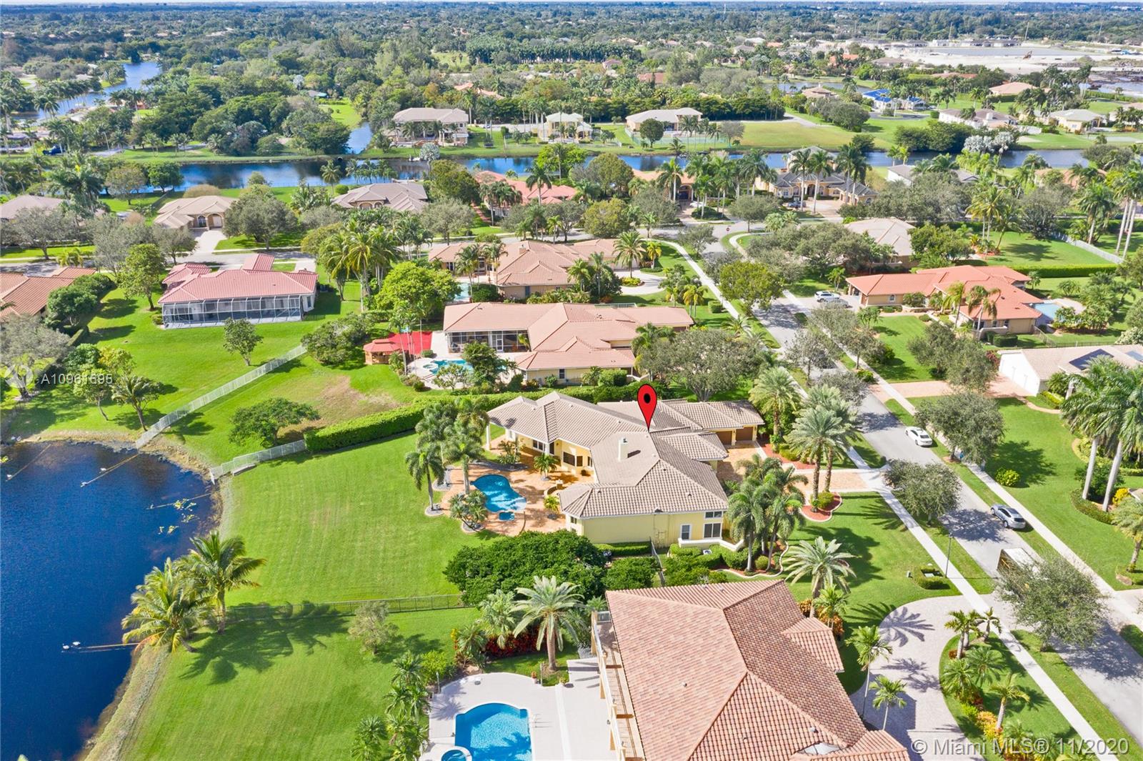 This splendid home located on the premier lake front lot in the charming and quaint community of West Ridge. This one story, 5 bedroom, 5 bathroom sits on a builders acre. This home offers all new impact windows and doors, crown molding, and double height ceilings throughout. The family room boasts a one of a kind build out and the living room holds a wood burning fireplace that overlooks the lush resort style yard.