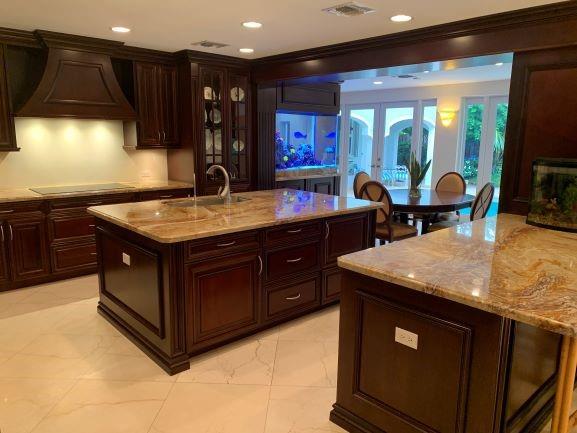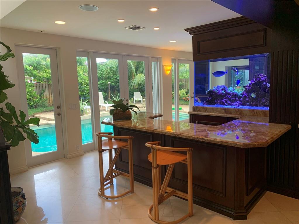 Fabulous 5 Bedroom 4 Full Bath Pool Home in the Emerald Hills Cloisters. This spacious home is great for entertaining & features a large dining room, living room and family room all with custom cherry cabinetry and a one of a kind bar with a custom 300 gallon, fully automated, saltwater aquarium that is visible from all angles of the home. The custom oversize kitchen featuring cherry cabinetry, marble flooring, Sub Zero and Wolf appliances is a dream with its two islands, exotic granite tops and exurbanite storage space all with poolside views. This rare two-story home has impact windows and two master suites that is great for large or extended families. This is a true gem, great location and easy walk to houses of worship. Close to I-95, Turnpike, Beaches, Casino, & FLL Airport