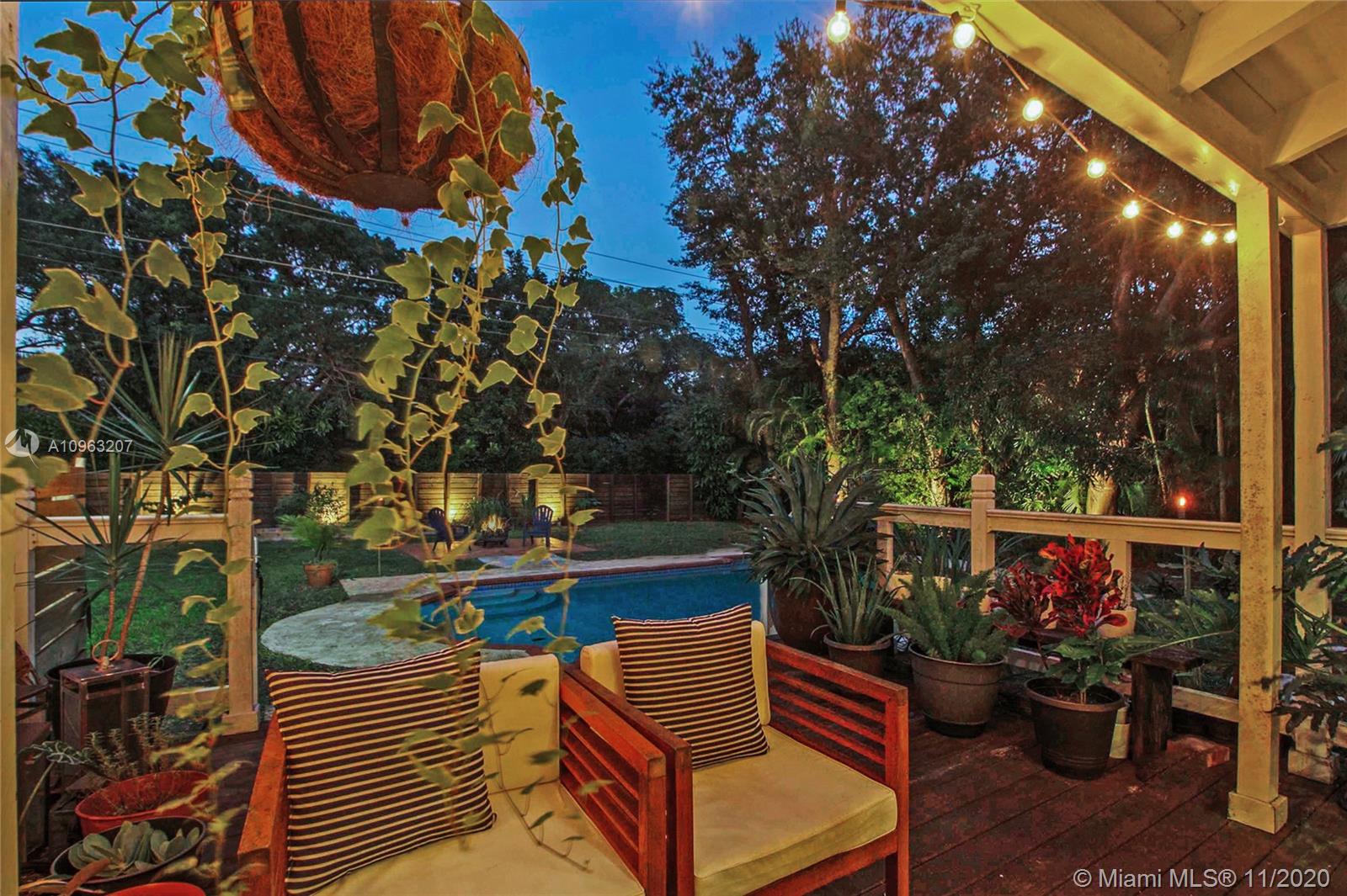 Beautifully renovated home in the heart of Miami Shores. This home is set on a large lot with an enormous backyard and oversized pool—smartly planned floorplan with split 3 bedrooms. The master features a walk-in closet. The master bath has dual vanities/dual shower with designer tiling. The second bath has gorgeous tile, and modern The property is light and bright, with vaulted ceilings, impact windows and doors. The kitchen is renovated with newer stainless steel appliances: a security system & many additional upgrades throughout.