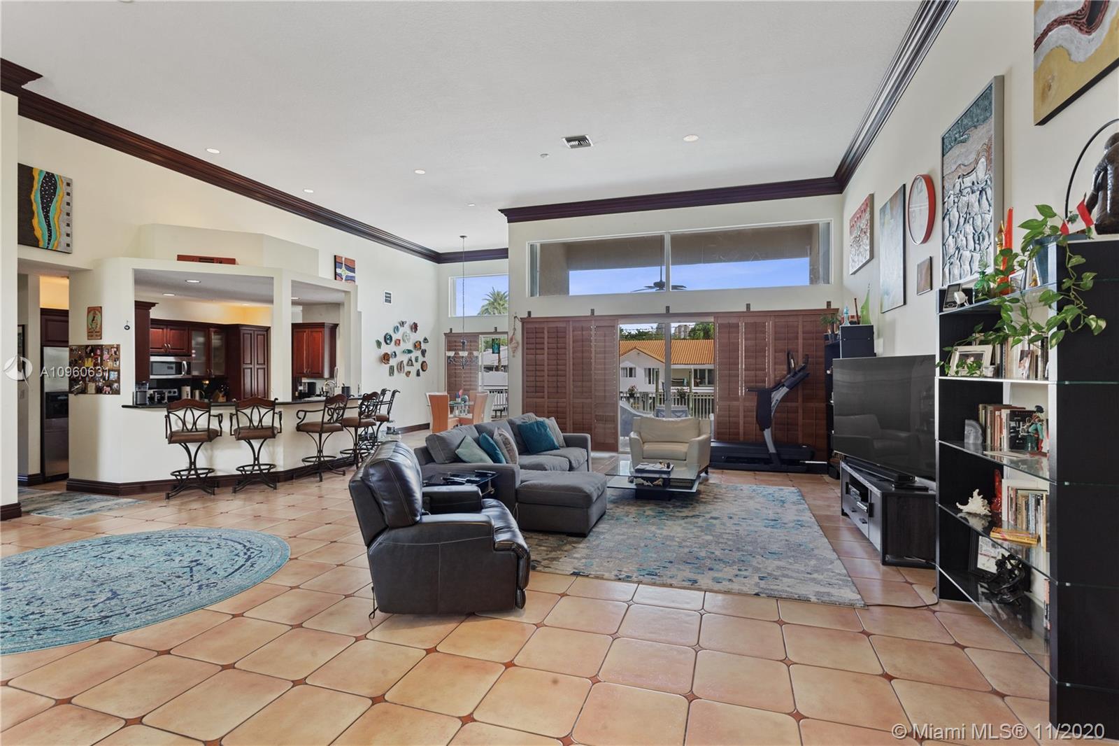 Beautiful waterfront home in the prestigious gated community of Eastern Shores. This spacious 3 Bed / 3 Bath is the ideal home for entertaining. Incredible open floor plan w/ Soaring 16 Ft High ceilings. The outdoor area features a large patio, swimming pool, and 80 ft of waterfront frontage w/boat dock and 13,000 LB lift included. Boaters Dream! 2 car Garage. Excellent location, close to shops, dining, Sunny Isles, Bal Harbour, and Aventura.
