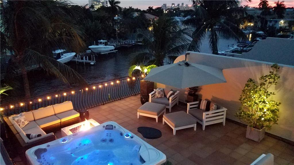 CORAL RIDGE WATERFRONT townhome with assigned boat slip up to 34' ft. (50 amp power/water) on deep water canal right off intercoastal waterway, no fixed bridges. Beautifully appointed (3,415 sq ft) 3BD/2BA +2 half baths, master suite/bedroom w/balconies. Marble master bath w/whirlpool tub, separate shower. Impact windows/doors. Spectacular private rooftop terrace w/outdoor kitchen, dishwasher, ice maker & spa completely set up for outdoor living . Fully furnished option available. 2 car garage. Backup electric generator incl.. Whole house/outdoor Sonos/Bose system incl. Smart home features. Custom made 23' long one of a kind Shakuff Chandelier.