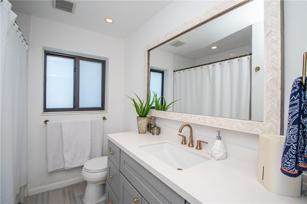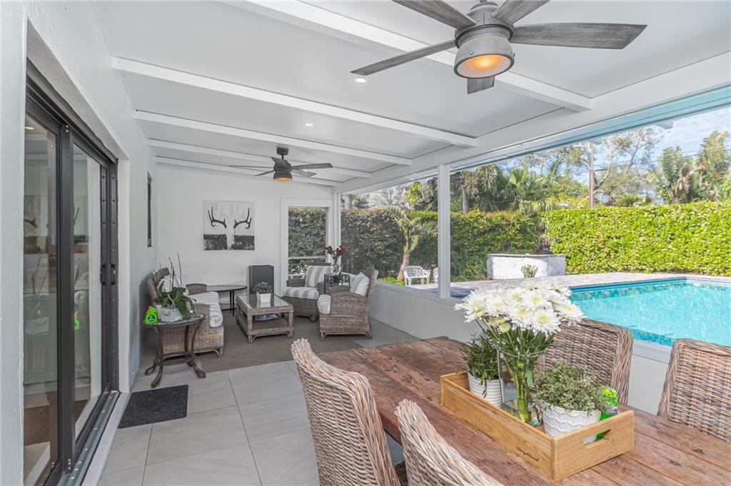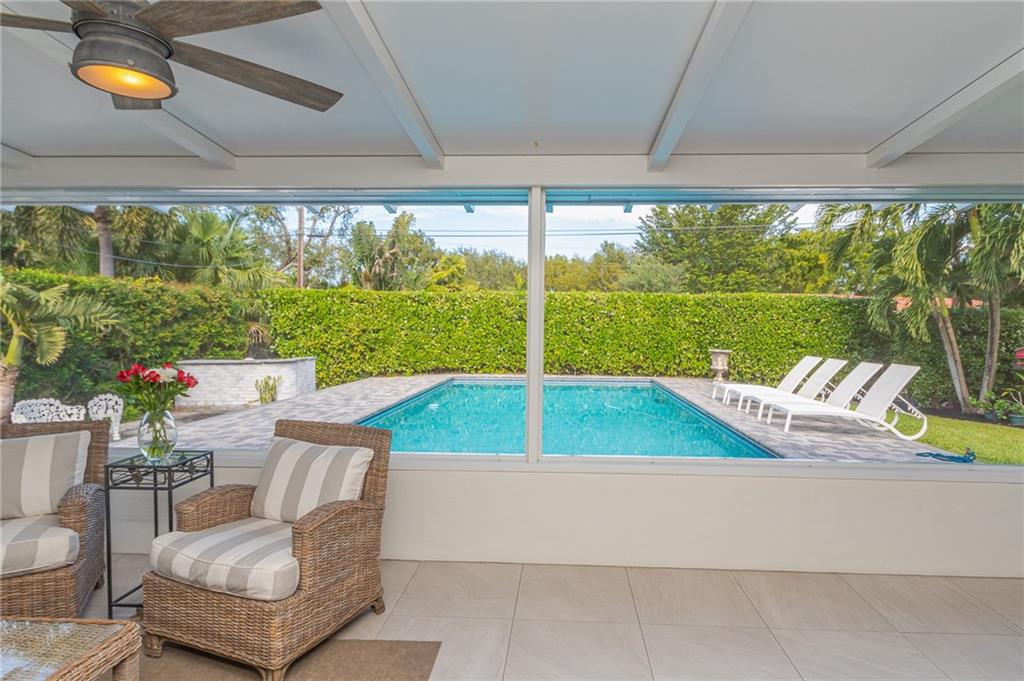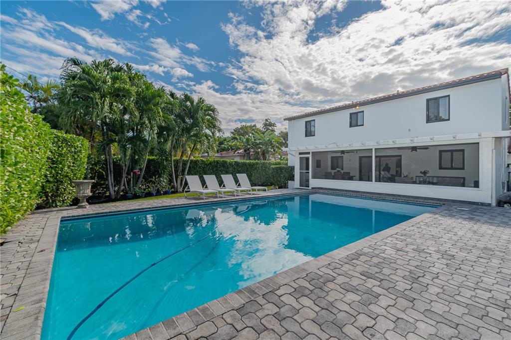 Lovely home displaying excellent care and elegant upgrades. Appealing screened patio overlooking the large pool and garden, great for entertaining and/or kids activities. This beautiful two story home features impact windows & doors, wood flooring throughout the interior. Spacious kitchen w/white cabinets (solid wood), Carrara marble countertop & backsplash. Equipped w/ Frigidaire stainless steel appliances. Wireless home alarm/cameras. Automatic sprinkler-system w/deep well, no stains will occur. Great location at Miami Shores, easy commute to the beach, downtonwn and much more. It is a must see.
